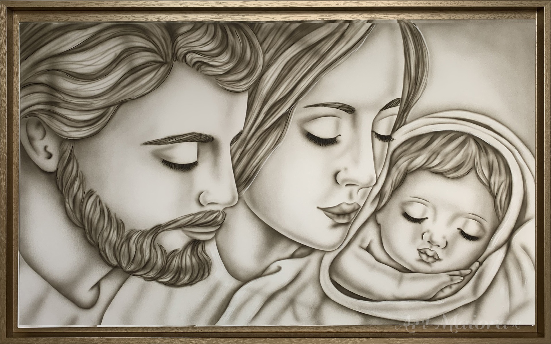 TENEREZZA CON DIMENSIONE TELA DI 110 X 65 cm con FINITURA VARIANTE TORTORA in abbinamento la CORNICE AD L ORO VINTAGE. dipinto su tela realizzato a mano La dimensione finale del dipinto è 120 X 75 cm (larghezza x altezza)