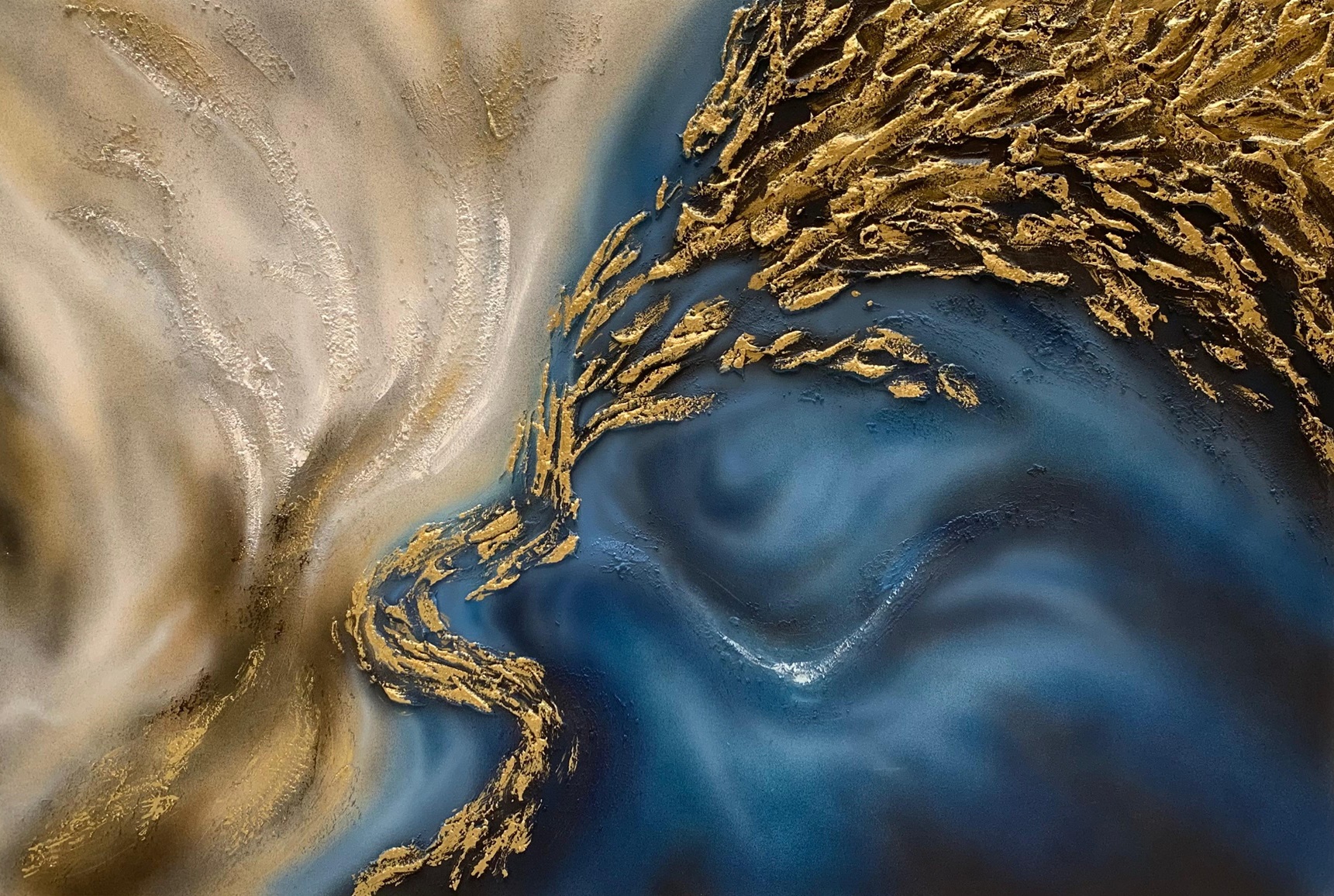 Quadro dipinto a mano “Terra E Mare In Danza”, 150x80cm, finitura tradizionale, senza cornice.