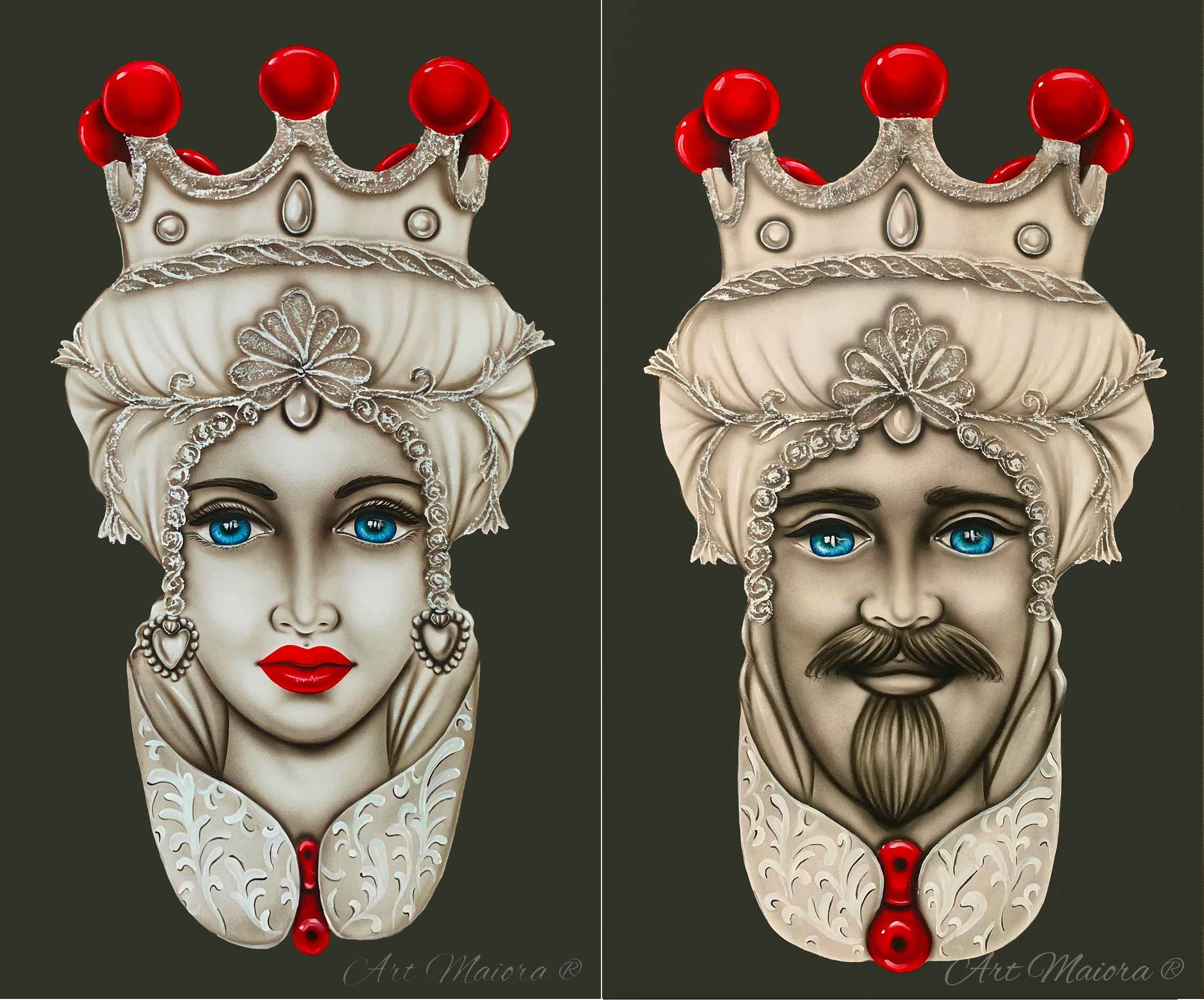 TESTE DI MORO CROWN (set due pezzi) CON DIMENSIONE TELA (2 PEZZI) DI 110 X 65 cad. dipinto su tela realizzato a mano cm con FINITURA VARIANTE TORTORA Senza Cornice