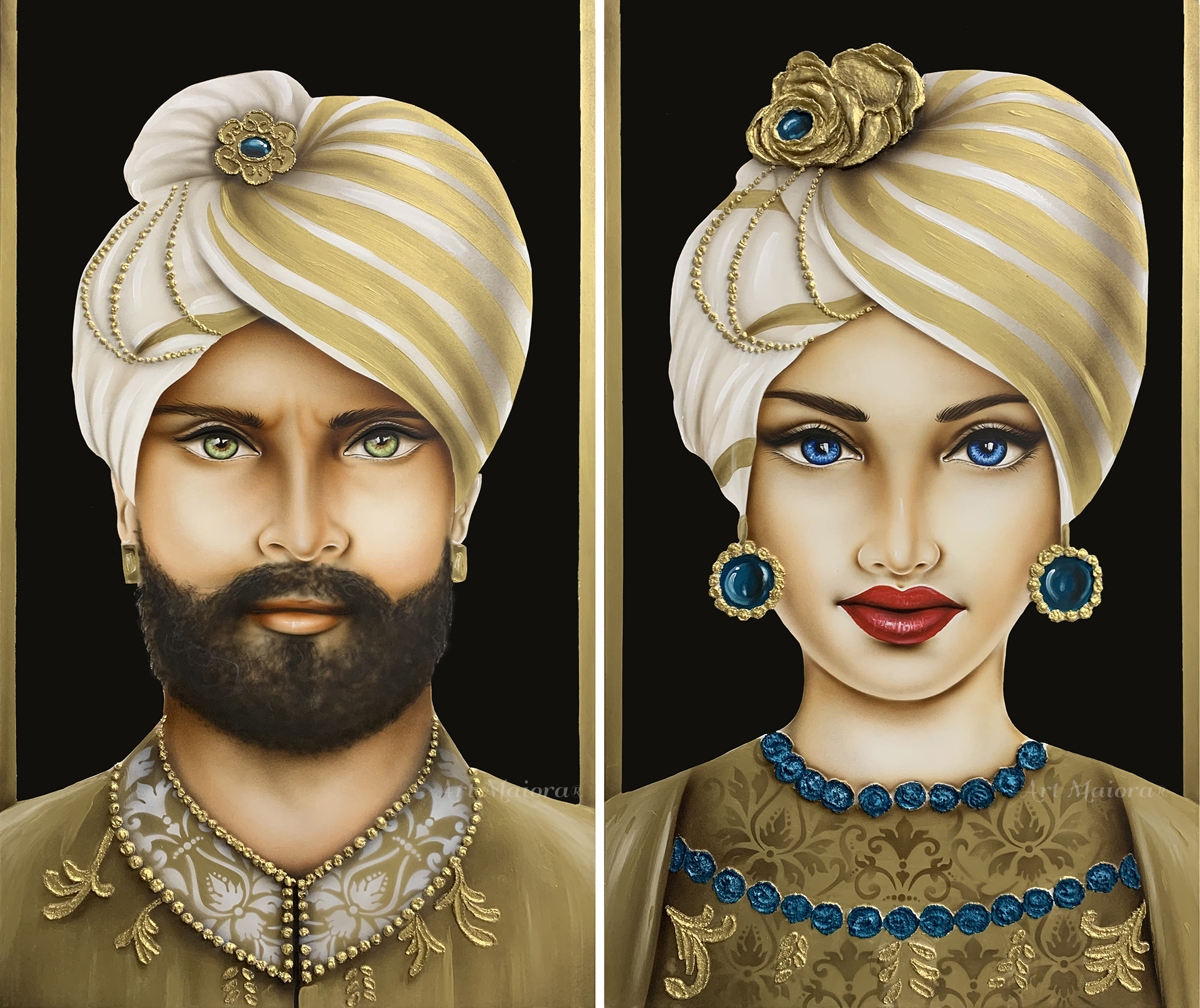 TESTE DI MORO NEW (set due pezzi) CON DIMENSIONE TELA (2 PEZZI) DI 110 X 65 cad. dipinto su tela realizzato a mano cm con FINITURA VARIANTE NEW Senza Cornice