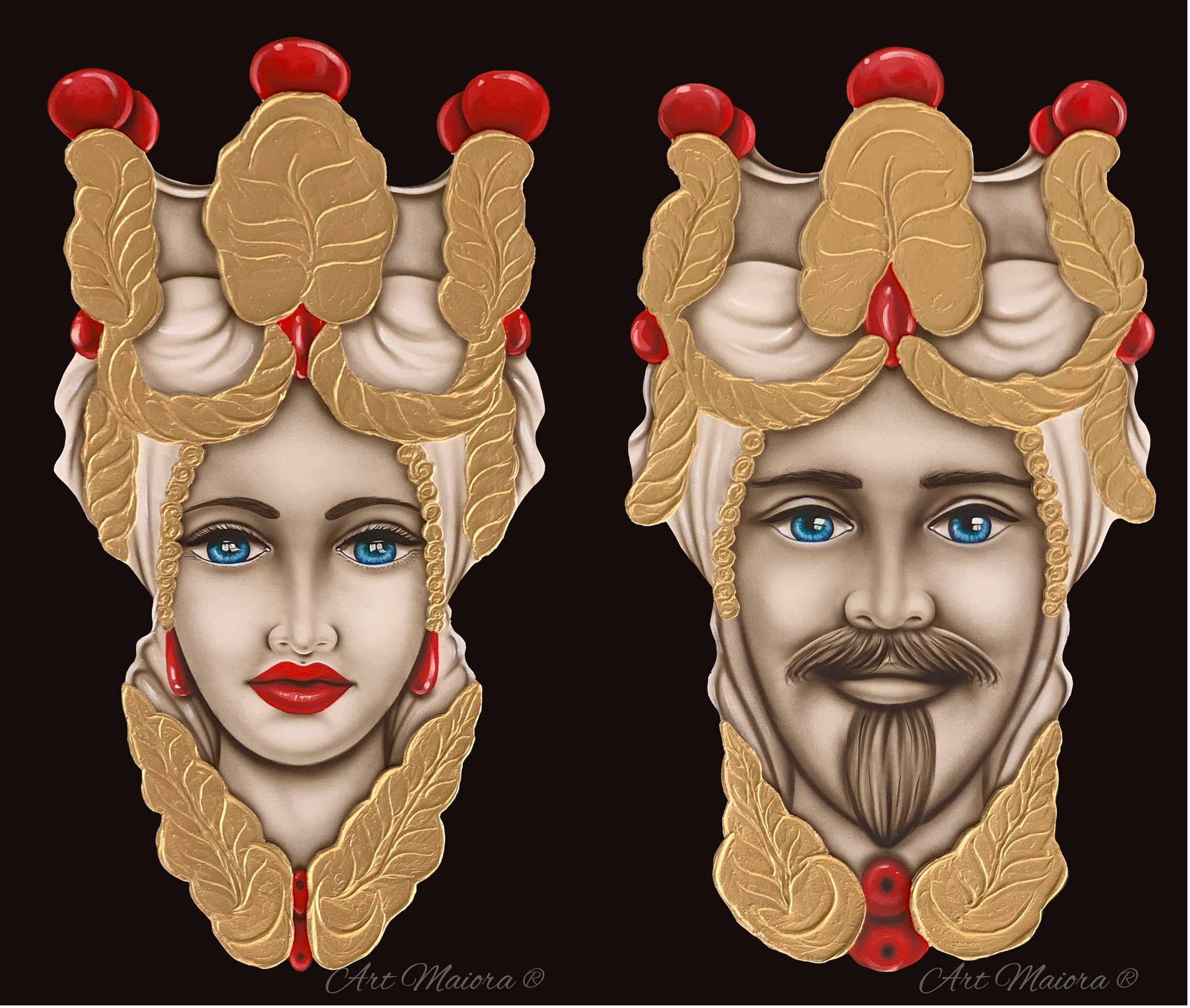 TESTE DI MORO (Set due pezzi) CON DIMENSIONE TELA (2 PEZZI) DI 110 X 65 cad. dipinto su tela realizzato a mano cm con FINITURA VARIANTE ORO E ROSSO Senza Cornice