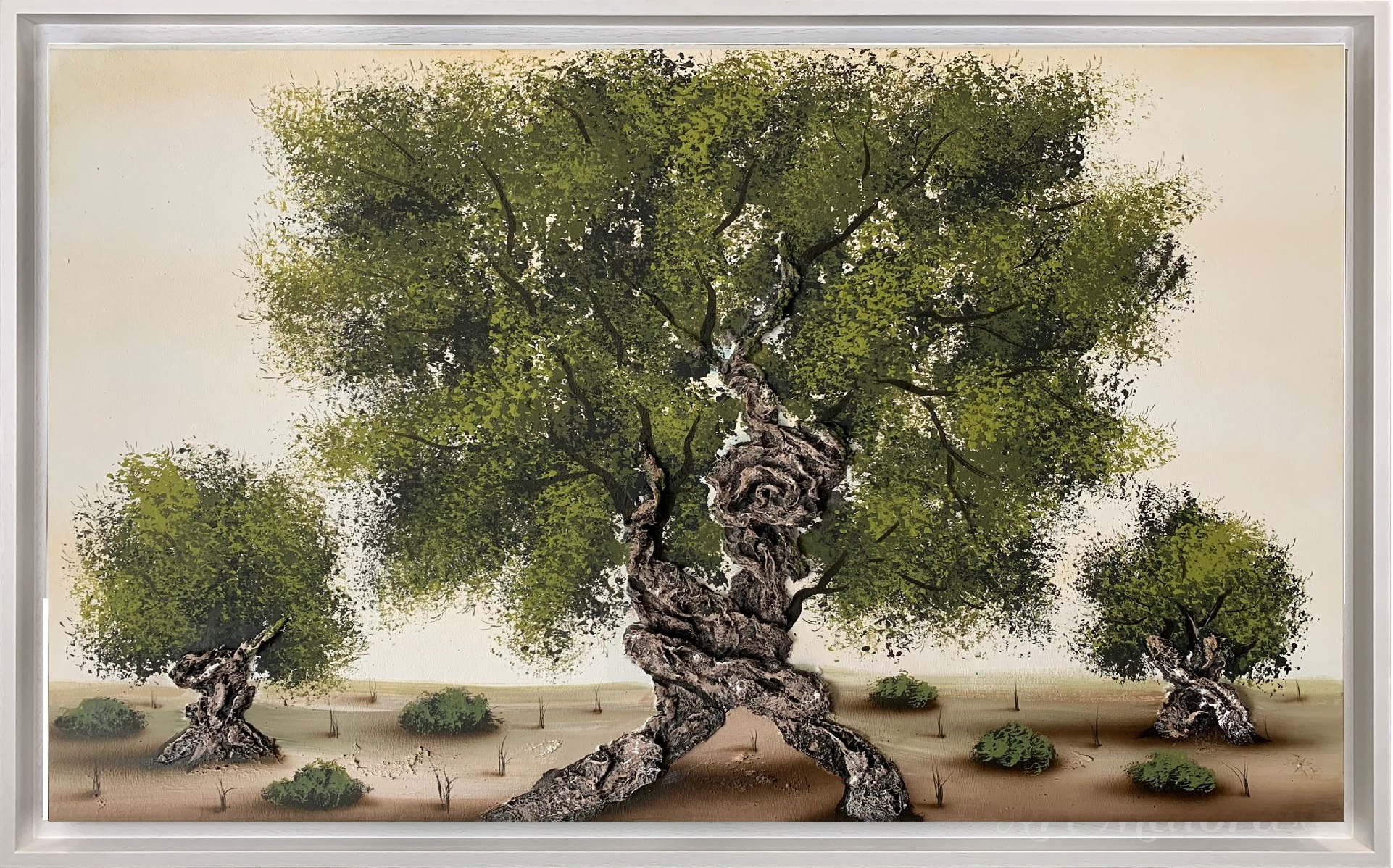 Quadro dipinto a mano “Tramonti Romantici”, 160x90cm, finitura tradizionale, cornice ad l bianca poro aperto.