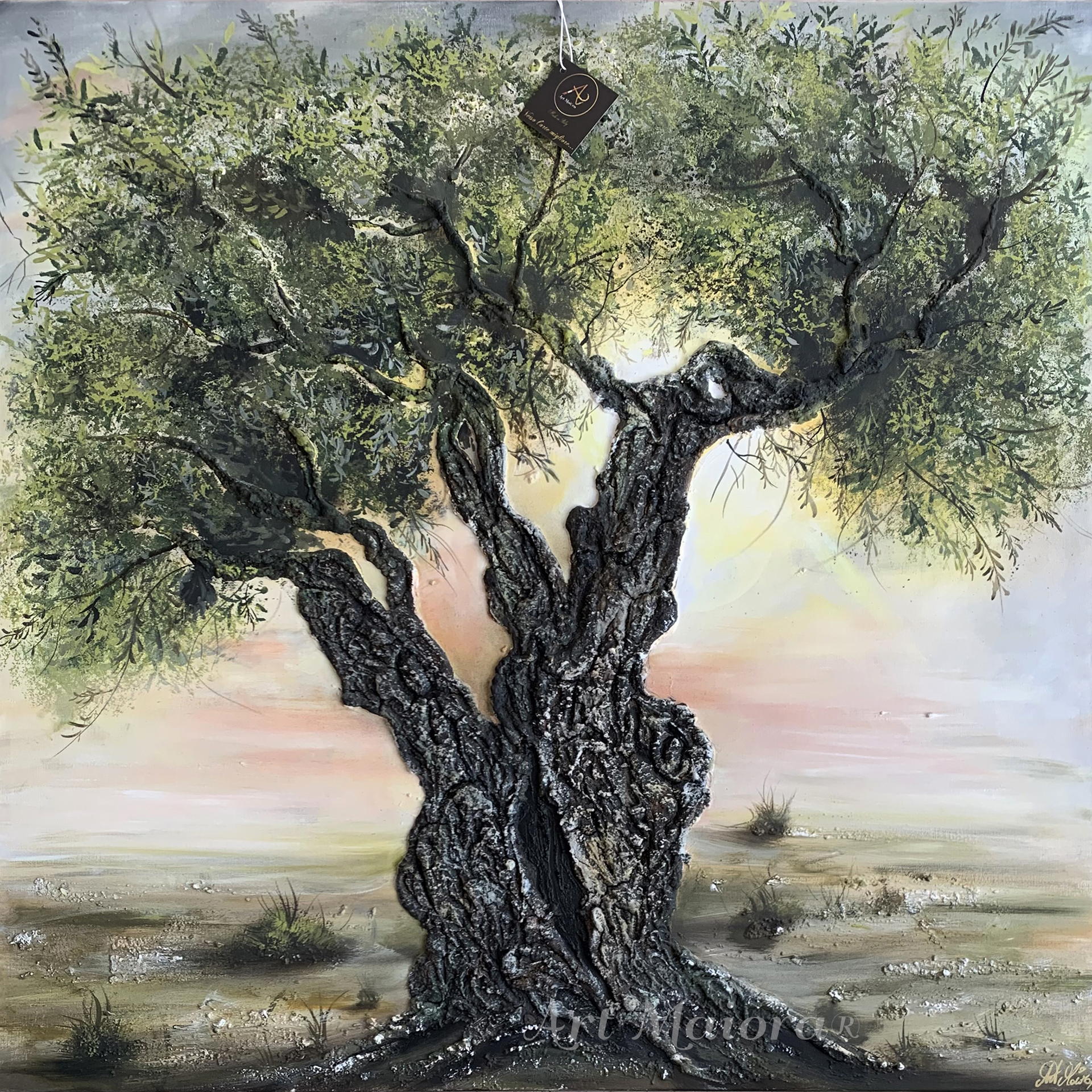 Quadro dipinto a mano “Tramonto”, 100x100cm, finitura tradizionale, senza cornice.