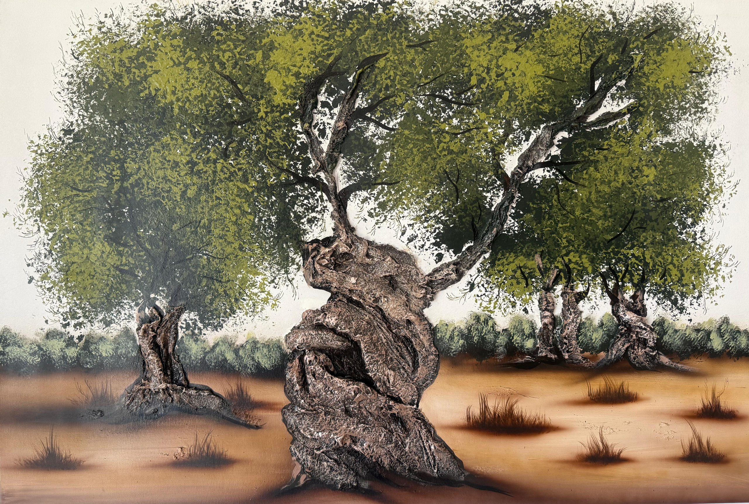 Quadro dipinto a mano “Ulivi Secolari”, 150x100cm, finitura neutra, senza cornice.