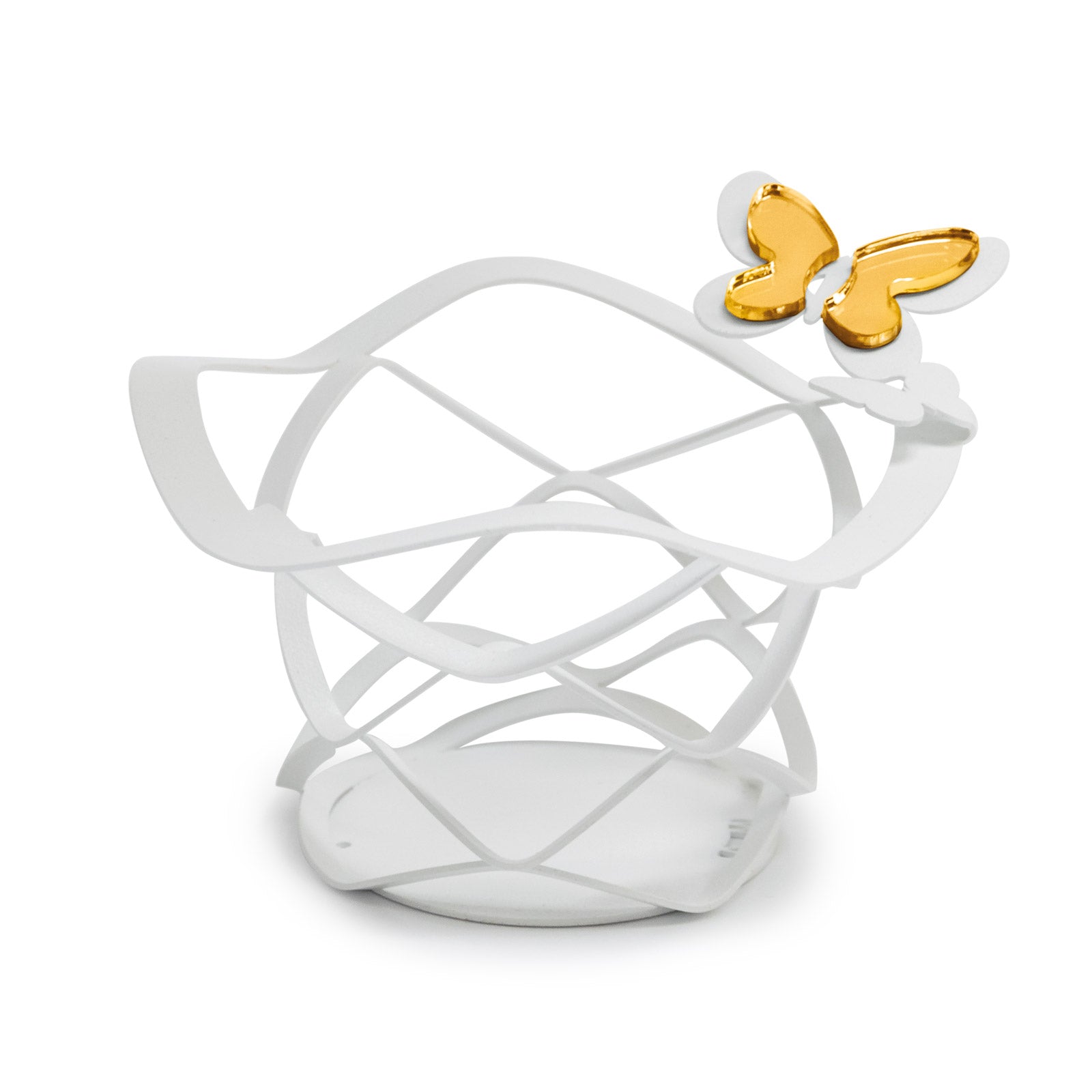 Arti & Mestieri – Bomboniera Di Design Cestino Butterfly Con Decoro colore Bianco in ferro e polimetilmetacrilato 13 x 5 di latezza cm
