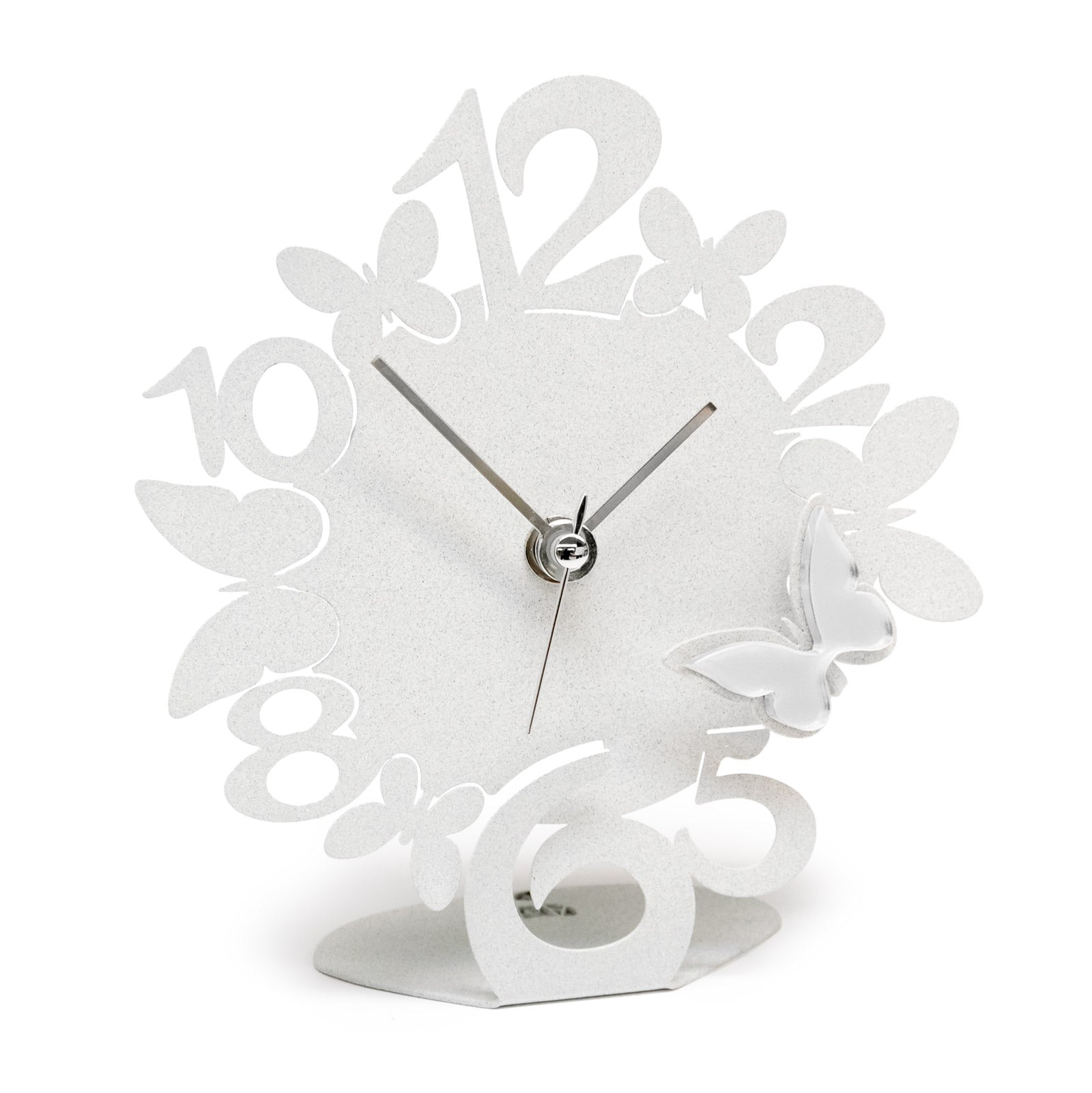 Arti & Mestieri – Bomboniera Di Design Orologio Sciame Farfalline Decorato colore Bianco in ferro e polimetilmetacrilato 14 x 15 h cm