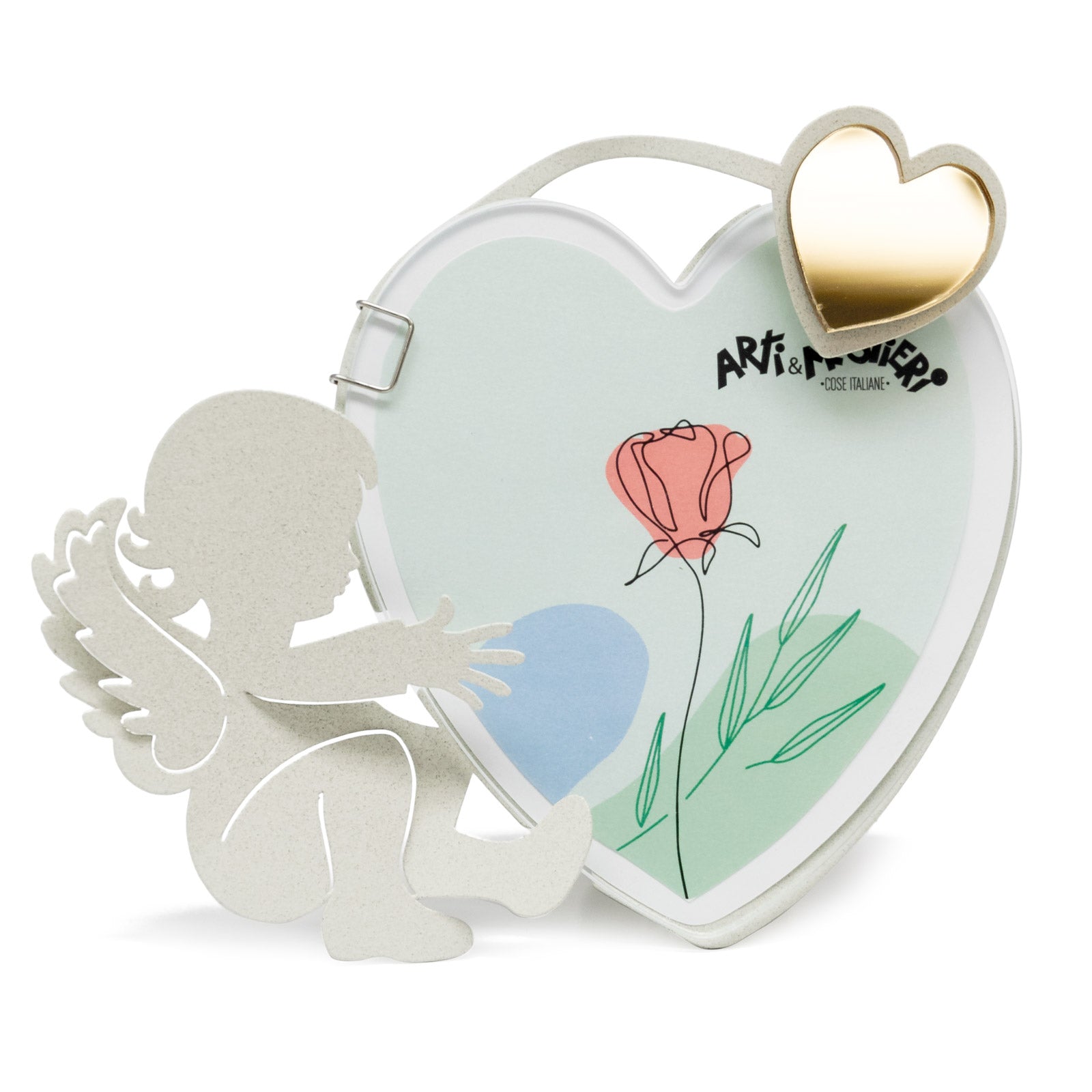 Arti & Mestieri – Bomboniera Di Design Portafoto Angioletto Decorato colore Avorio in ferro 16 x 14 h ( 11 x 11xformato della foto) cm