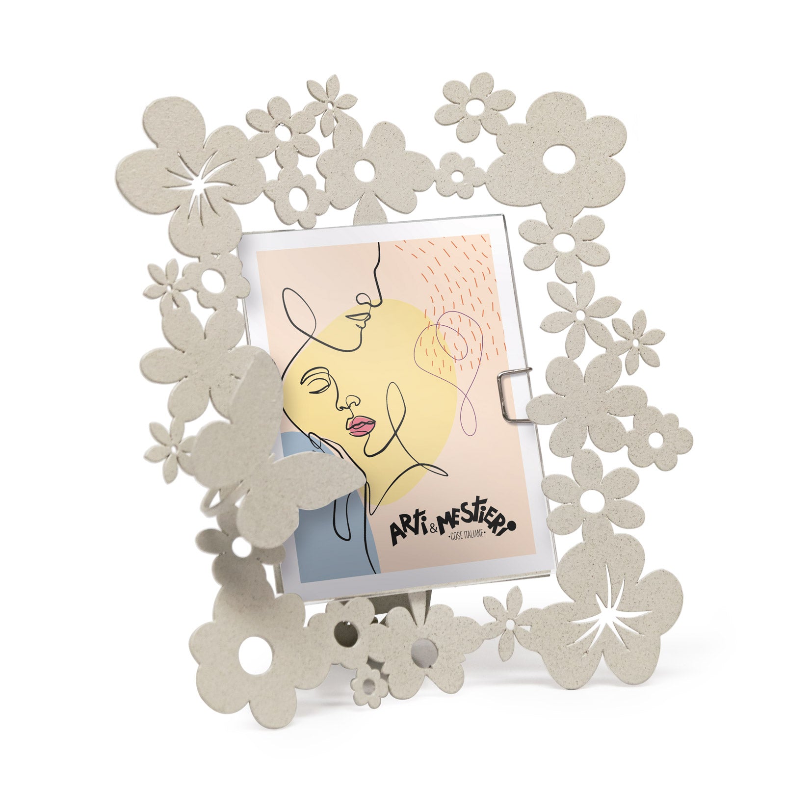 Arti & Mestieri – Bomboniera Di Design Portafoto Daisy colore Avorio in ferro 14 x 16 h (9,5 x 12,5 formato foto) cm