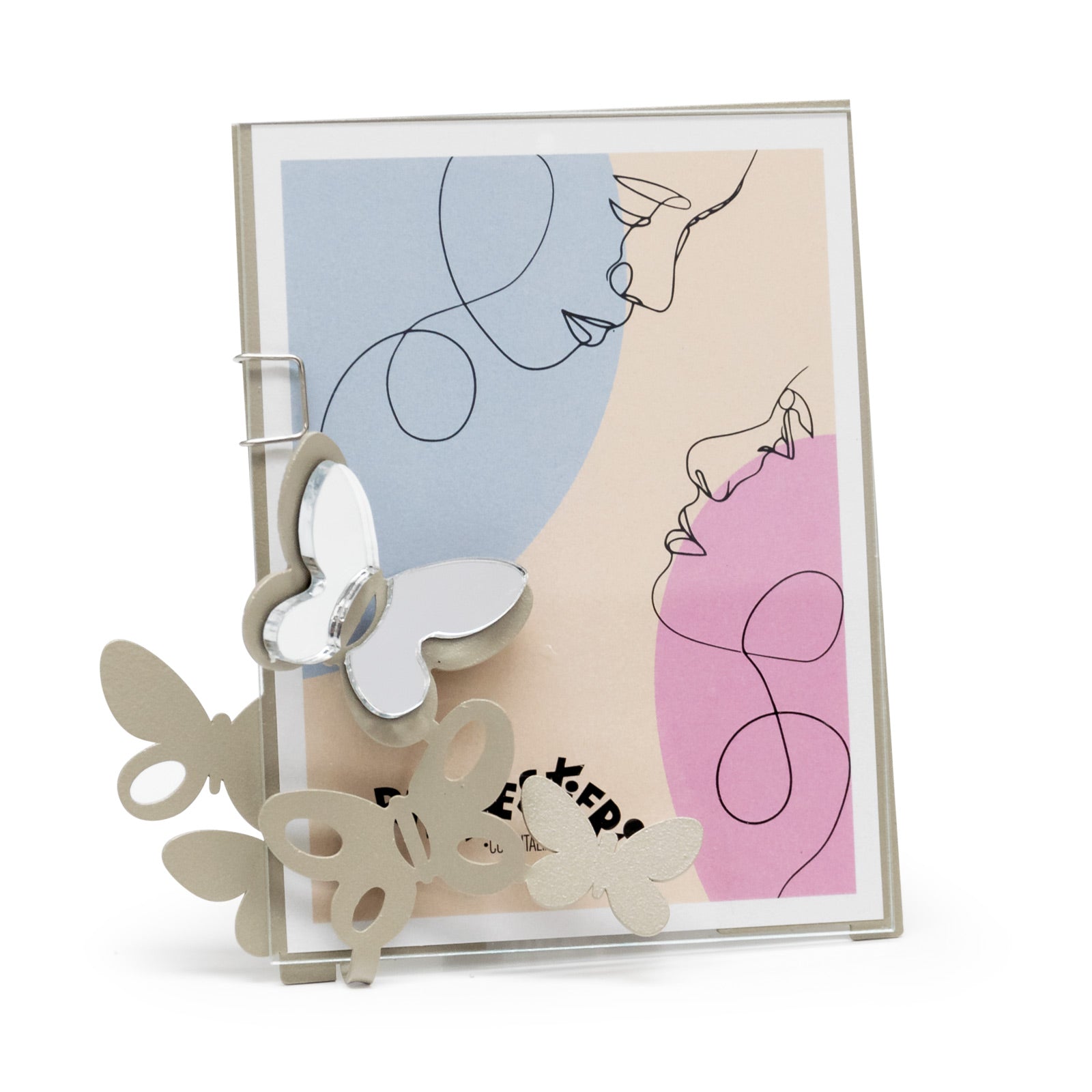 Arti & Mestieri – Bomboniera Moderna Portafoto Farfalle Decorato colore Sabbia in ferro e polimetilmetacrilato 12 x 13 h (9 x 12 formato della foto) cm