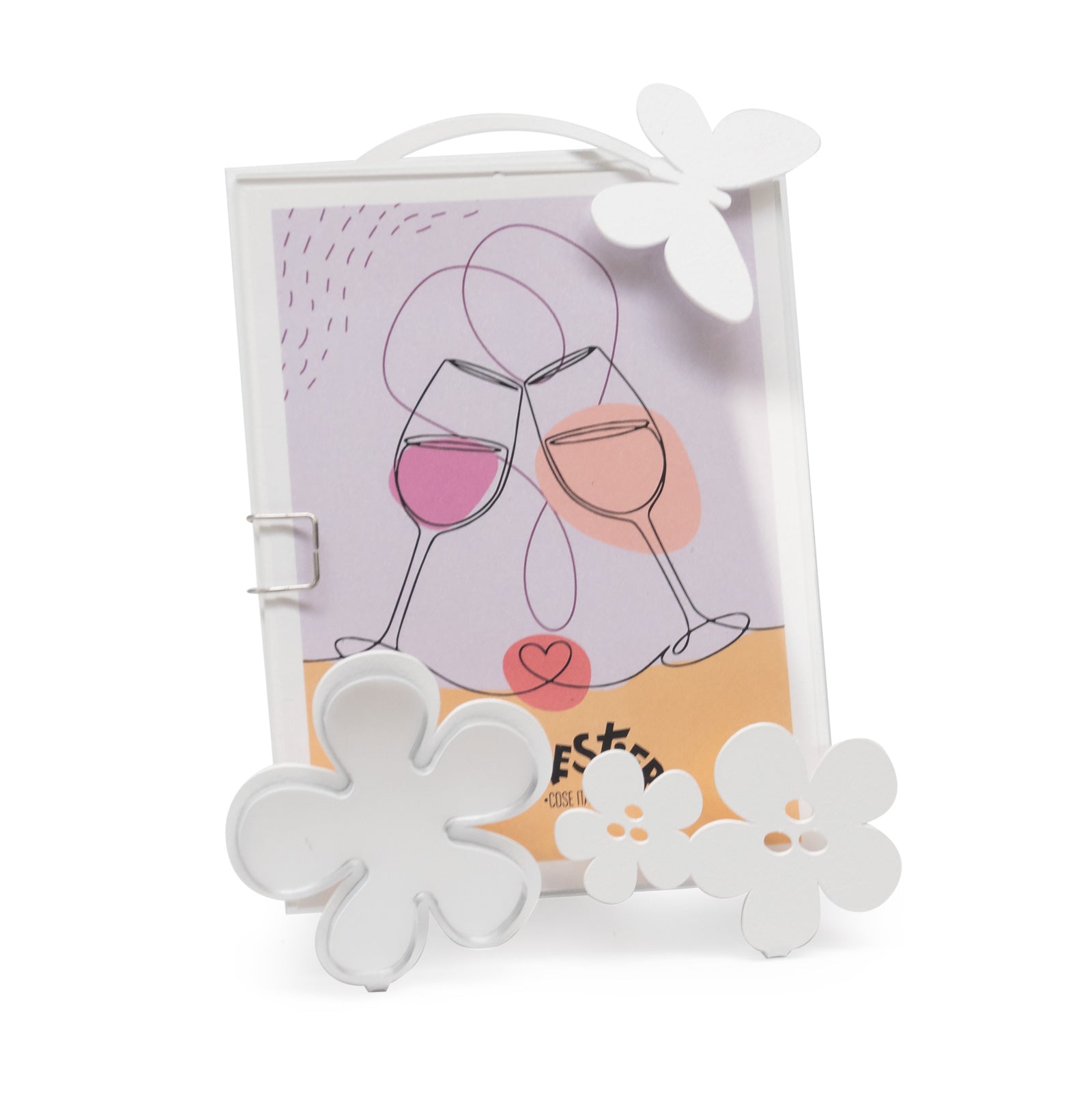 Arti & Mestieri – Bomboniera Moderna Portafoto Fiorellini Decorato colore Bianco in ferro 10 x 15 h (9,5 x 12,5xformato della foto) cm