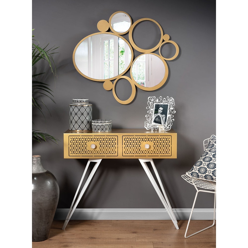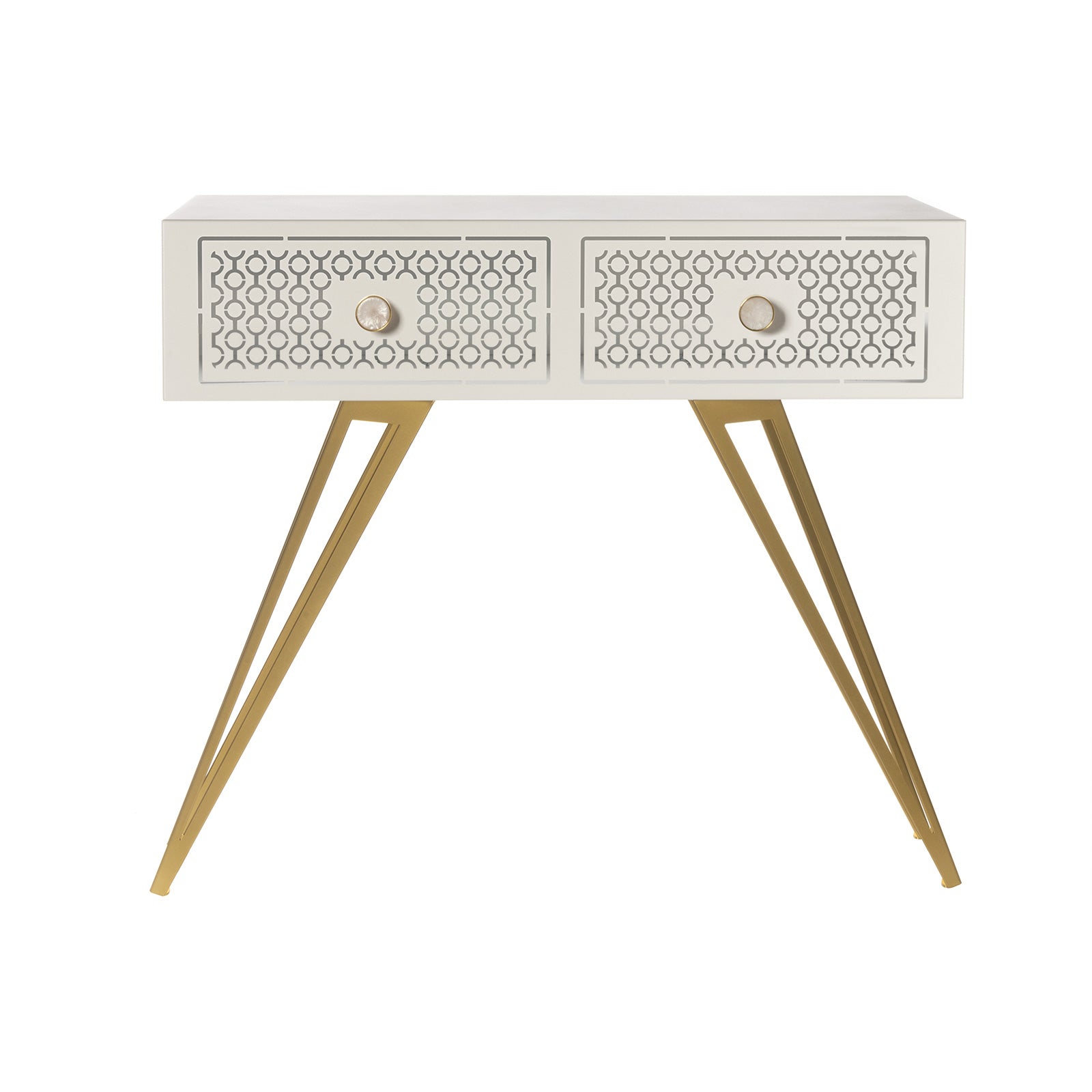 Arti & Mestieri – Consolle Per Ingresso Mayfair Grande colore Bianco marmo e oro trasparente in ferro, ferro e resina per i pomelli 100 x 35 x 80 h cm