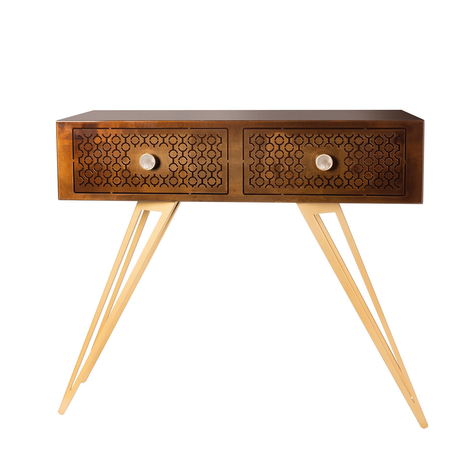 Arti & Mestieri – Consolle Per Ingresso Mayfair Grande colore Caramello e oro trasparente in ferro, ferro e resina per i pomelli 100 x 35 x 80 h cm