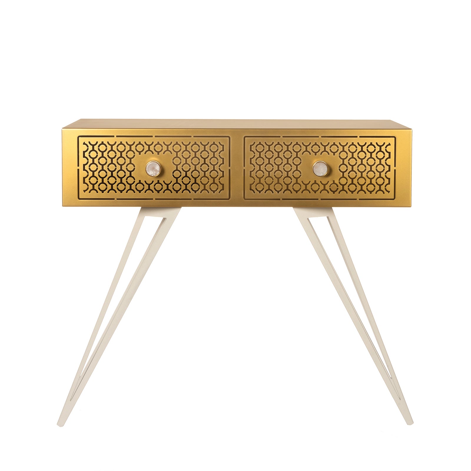 Arti & Mestieri – Consolle Per Ingresso Mayfair Grande colore Oro trasparente e bianco marmo in ferro, ferro e resina per i pomelli 100 x 35 x 80 h cm