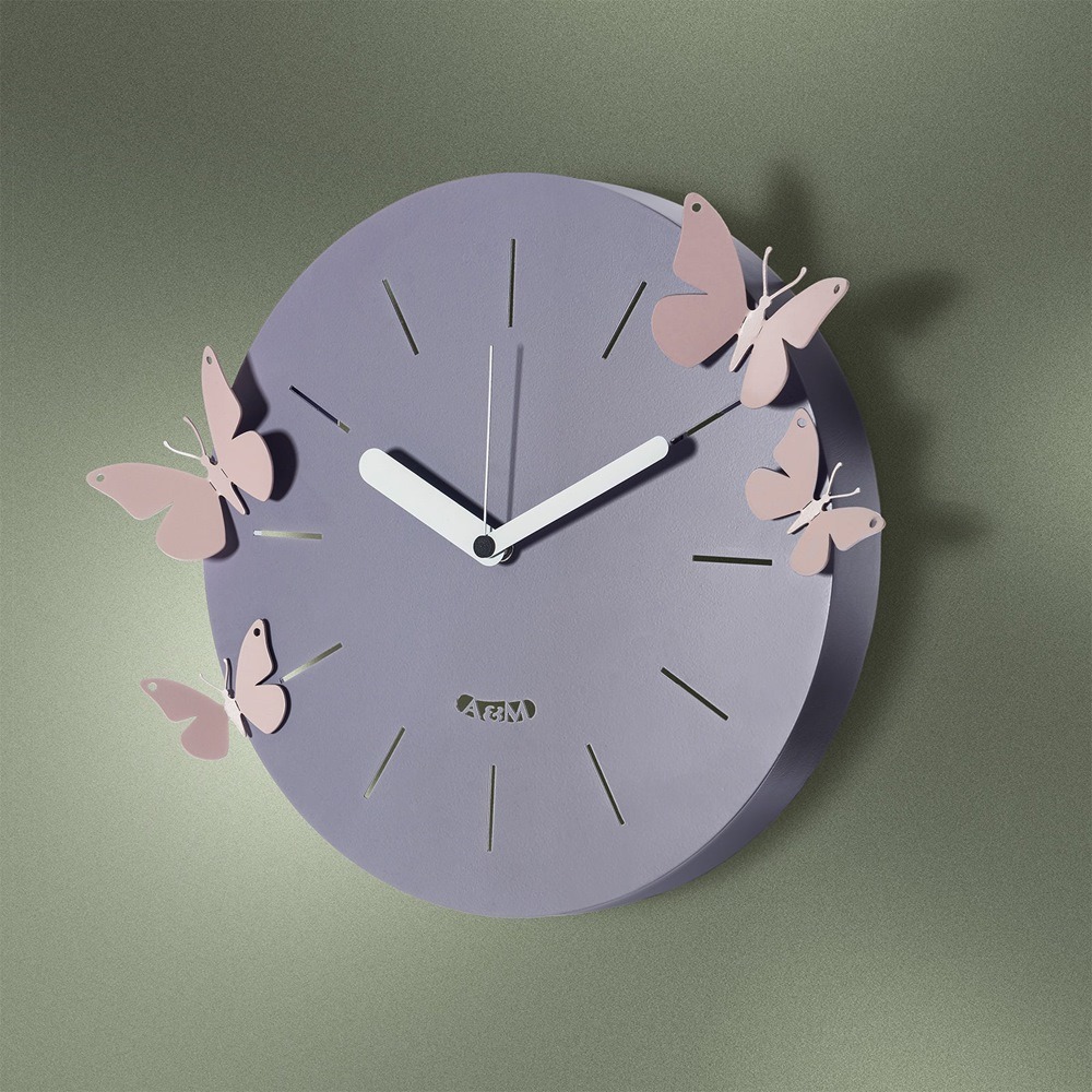 Arti & Mestieri – Orologio Con Farfalle Battito D’Ali colore Glicine/gelso in ferro 30 cm