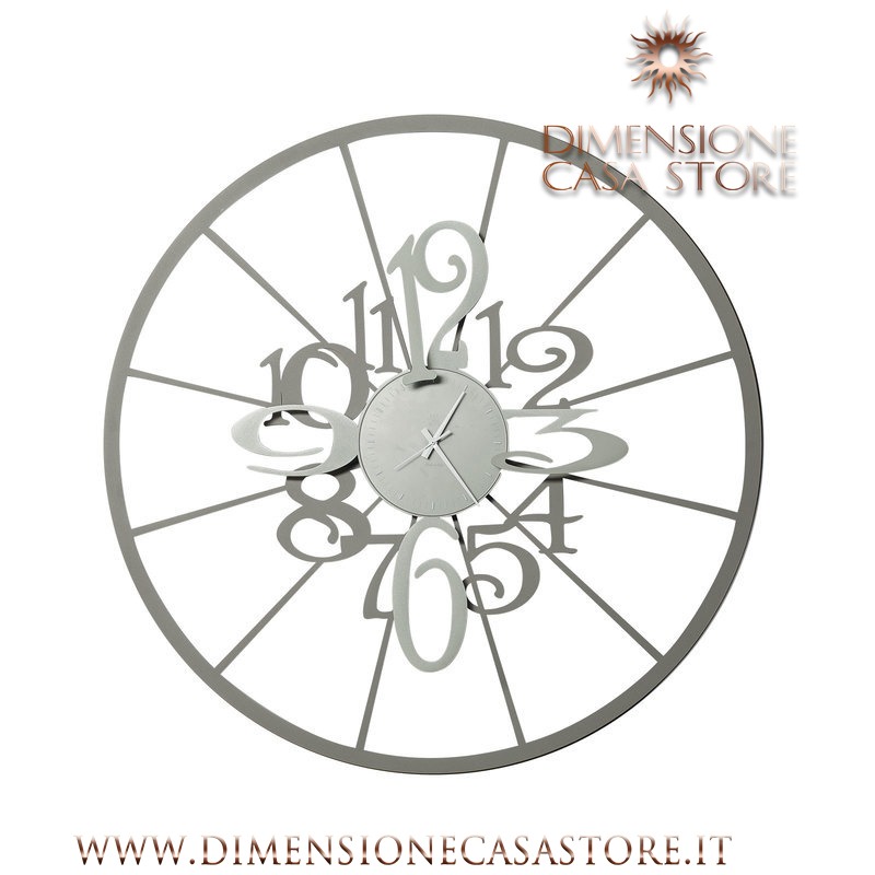Particolare orologio da parete moderno, di grande dimensione, della collezione Big Kalesy di colore ardesia e alluminio, totalmente in metallo, dal brand Arti&Mestieri.