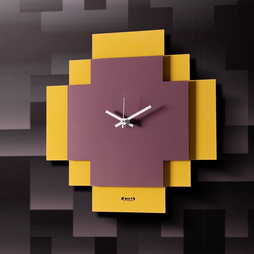 Arti & Mestieri – Orologio Di Design Geometrico Tetris colore Ocra/viola ametista in ferro 28x28h cm
