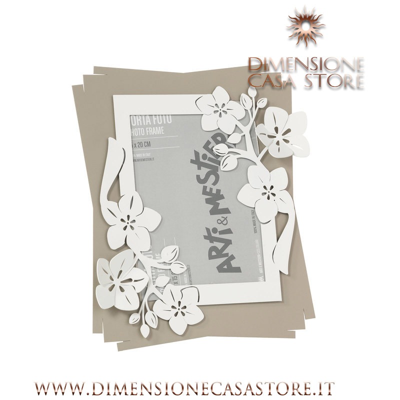 Arti & Mestieri – Porta foto con cornice floreale Fior di loto Sabbia Bianco 24x29h(15x20h)