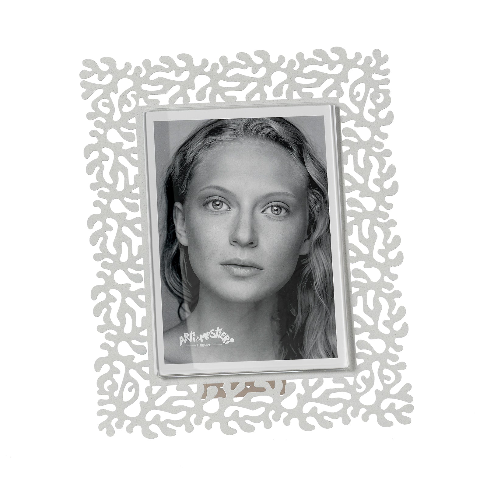 Arti & Mestieri – Portafoto Corallo Grande colore Bianco marmo in ferro e polimetilmetacrilato 21,6×26,4h (13×18 formato foto) cm