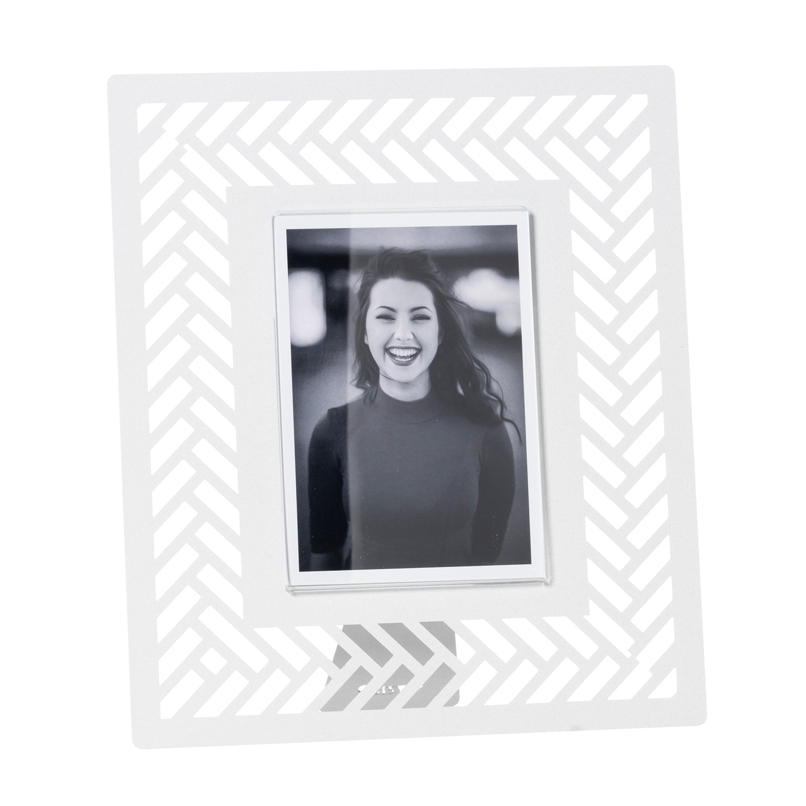 Arti & Mestieri – Portafoto Di Design Milleintrecci Grande colore Bianco marmo in ferro e polimetilmetacrilato 26,7 x 31h (12 x 17 formato foto) cm