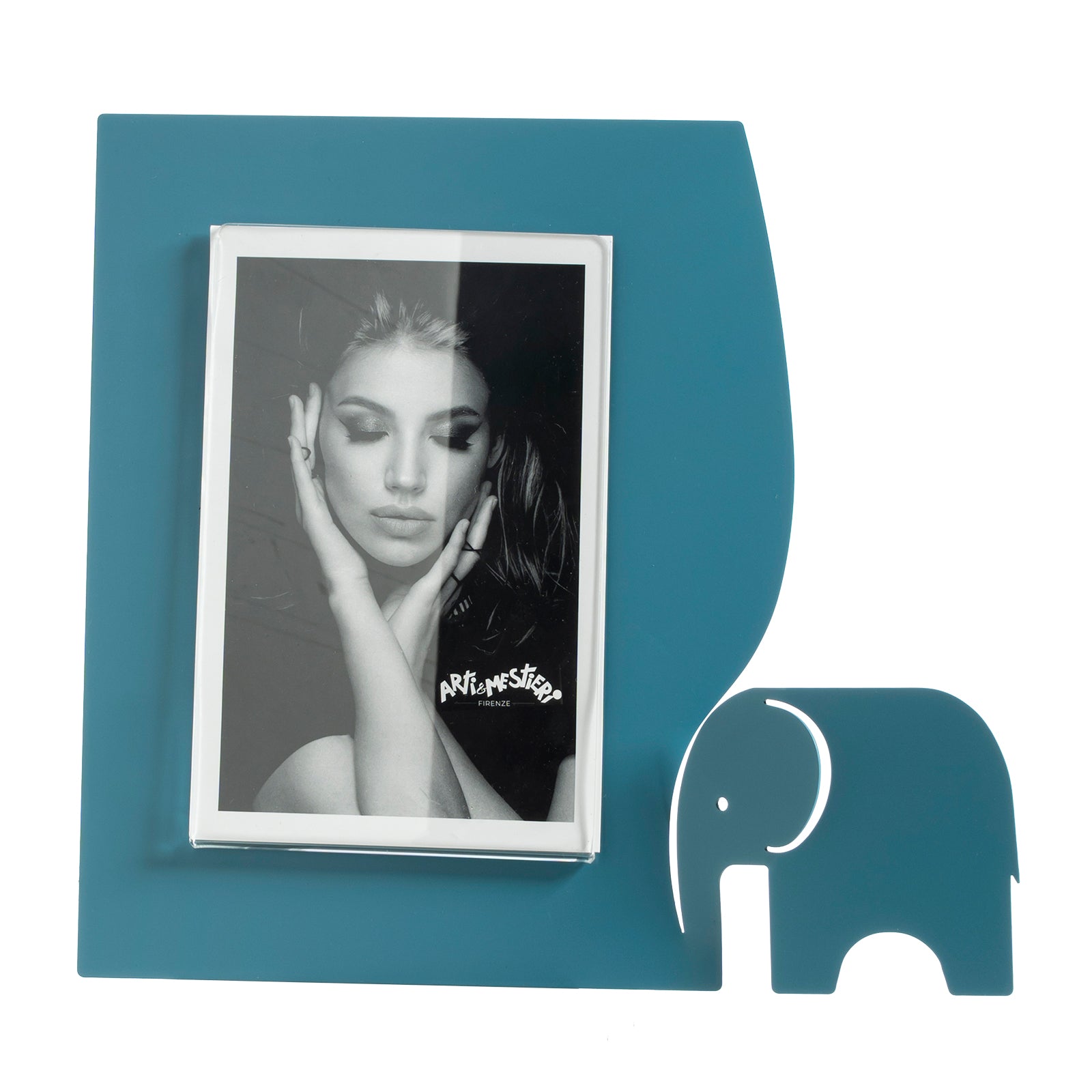 Arti & Mestieri – Portafoto Elefantino Grande colore Blu oltremare in ferro e polimetilmetacrilato 26×24,5h (13×18 formato foto) cm