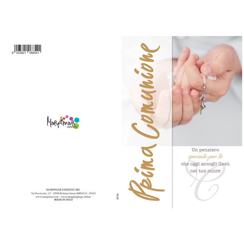 Biglietto cm 12 x 17, opalina con scritta laminata dorata, completo di busta