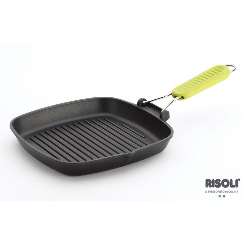 Bistecchiera in alluminio pressofuso con manico pieghevole in MORBIDO SILICONE GIALLO ‘SAPORELAX’
