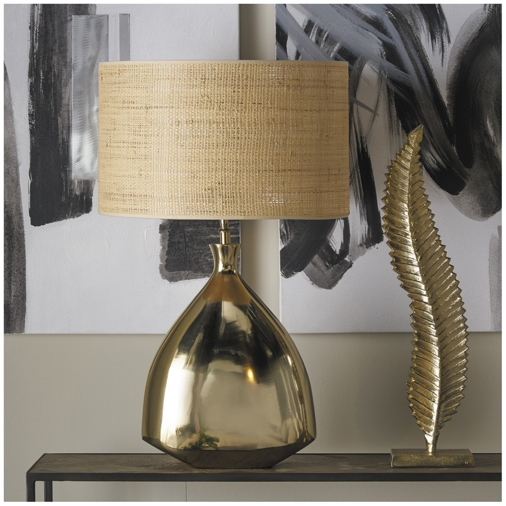 Portate un tocco di raffinatezza ai vostri interni con la maestosa statua Foglia. Grazie alla sua elegante forma in metallo color oro, farà una dichiarazione in qualsiasi stile di decorazione.