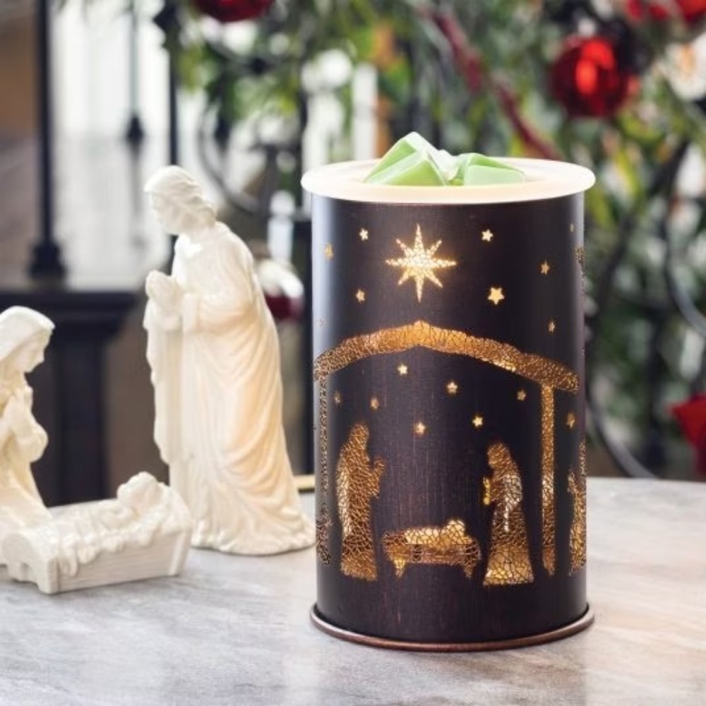 SCALDCANDELE ecc.Lampada profumata illuminante «Natività»Lampada profumata con finitura marrone/rame anticato Viene mostrata la scena della notte di NataleC’è una ciotola in vetro satinato sulla parte superiore per cambiare facilmente la cera.Basta aggiungere la cera profumata nella ciotola, accendere la lampada e godere del tuo profumo preferito dopo pochi minuti.La luce soffusa della speciale lampada riscaldante integrata crea un’atmosfera accogliente.Goditi la cera profumata in modo sicuro e pulito con le lampade profumate Candle Warmers:- senza fiamma aperta- senza fuliggine- senza fumo o rilascio di altri inquinantiUn ambiente di vita elegante è al centro di ogni prodotto Candle Warmers Etc.colore: marroneMateriale: metalloDimensione: 16 cmFonte di luce: scaldacandele ecc. È inclusa una lampada riscaldante da 25 watt.Funzionamento elettrico con interruttore on/offConsegnato in una bella confezione regaloPresa UE