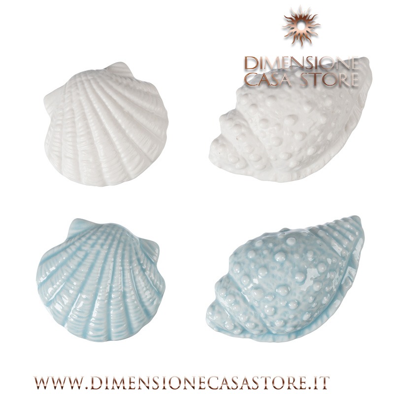 Magneti In Ceramica 4 Assortiti: Bianchi E Celesti, 2 Modelli Assortiti, Misure Art. 2 Conchiglie 7X4Cm, 2 Conchiglie 5X5Cm, Con White Box