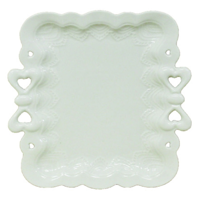 Piatto in porcellana bianca, cm 25 x 22 x 2,5, con scatola bianca.
