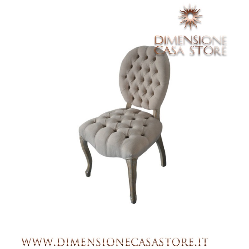 Sedia Legno Betulla, Tessuto 70% Cotone, 30% Lino, Color Beige 53*64*96Cm , Altezza Seduta: 50Cm