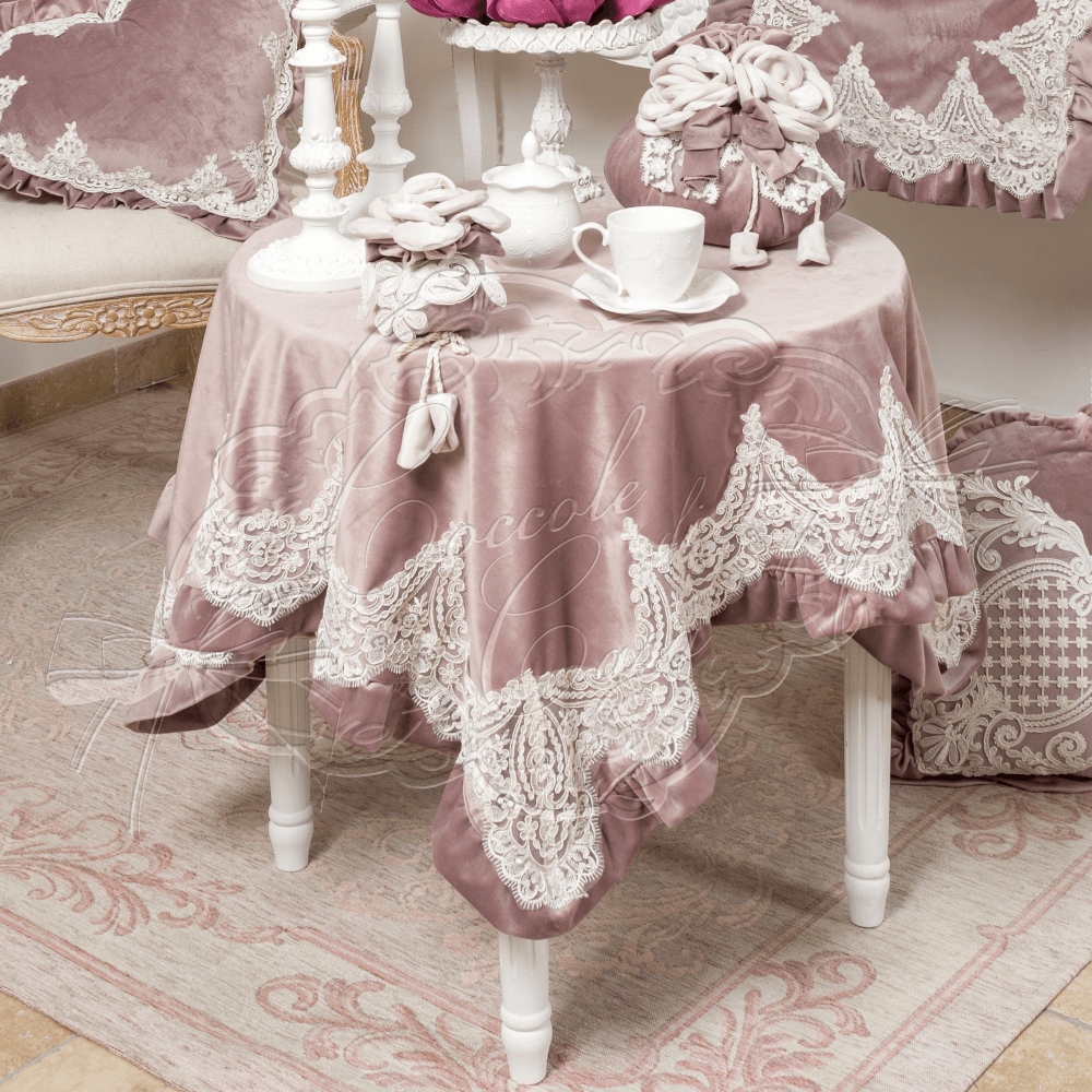Coccole di Casa – Tovaglia Vel. Malva Con Vol E Pizzo110X110 cm – Una proposta unica e curata nei dettagli, pensata per sorprendere e valorizzare ogni occasione speciale con stile ed emozione.