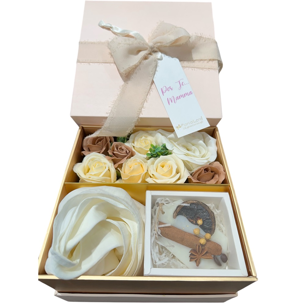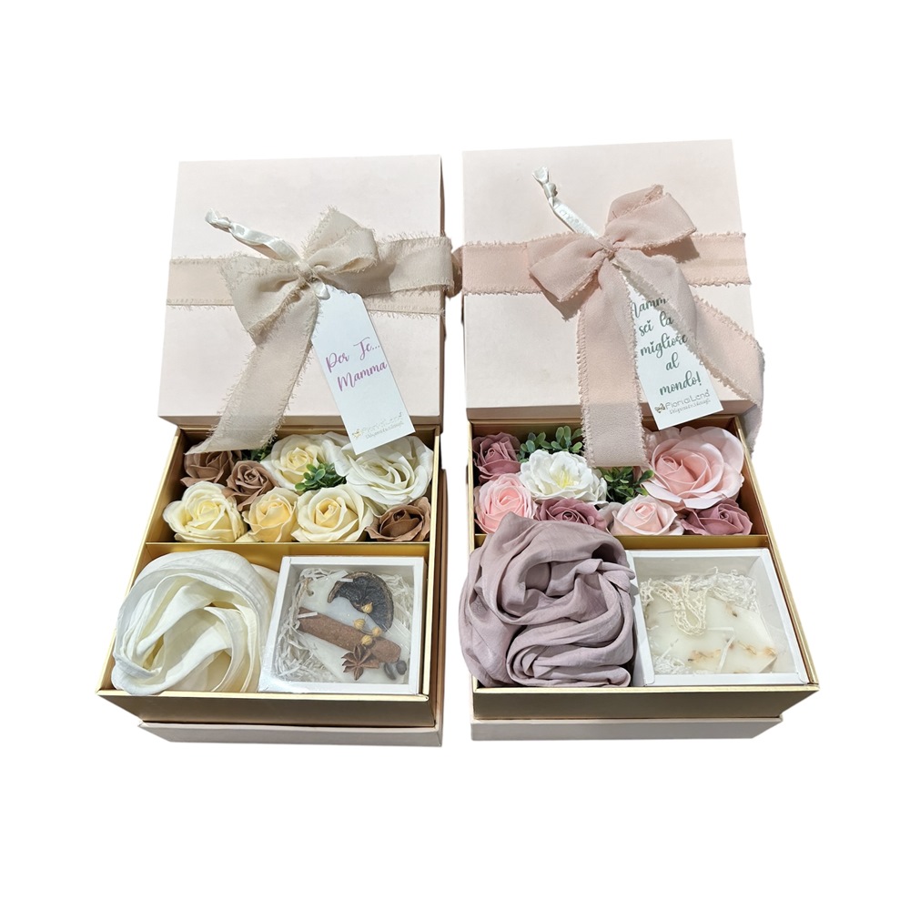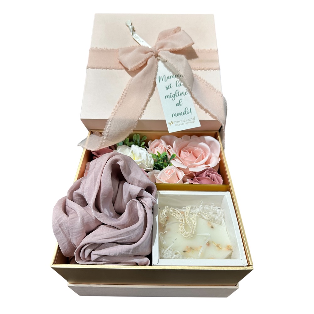 Fiori di Lena – Box con fiori, sapone, foulard e tag Festa della Mamma