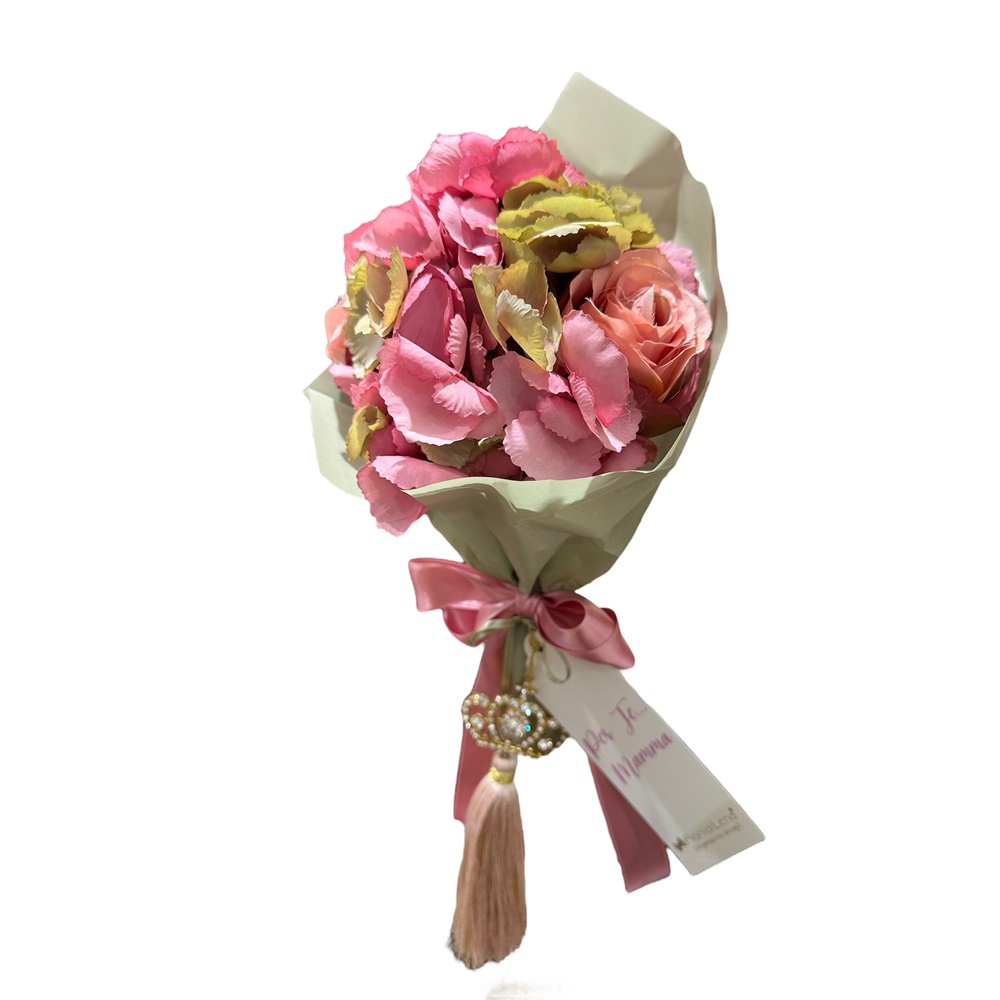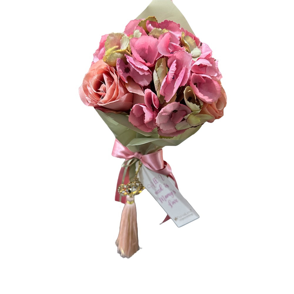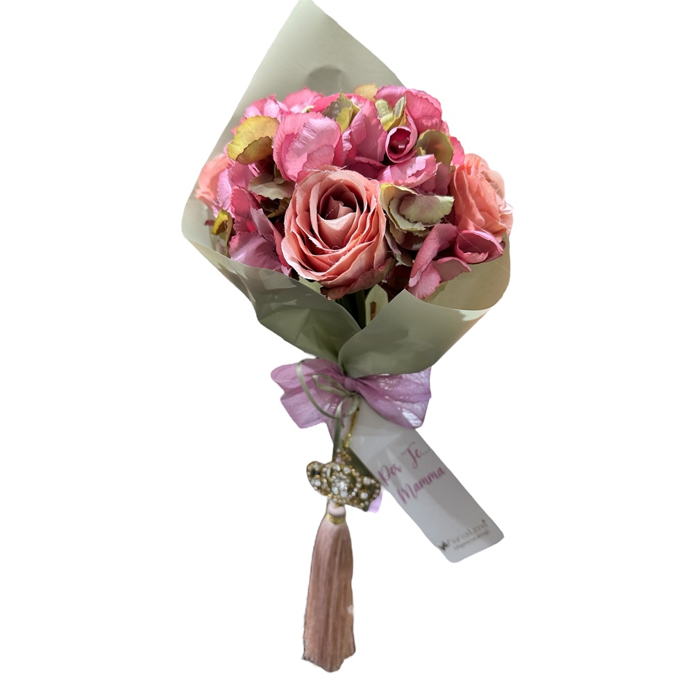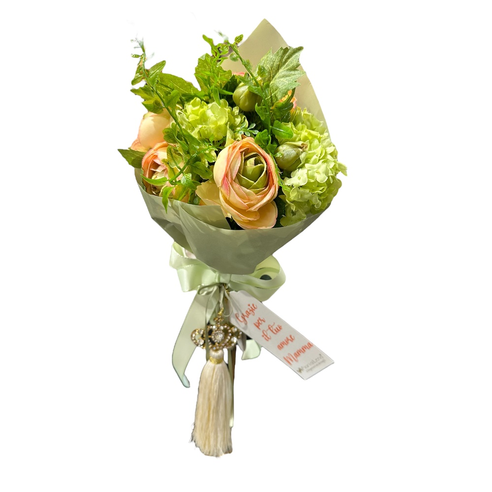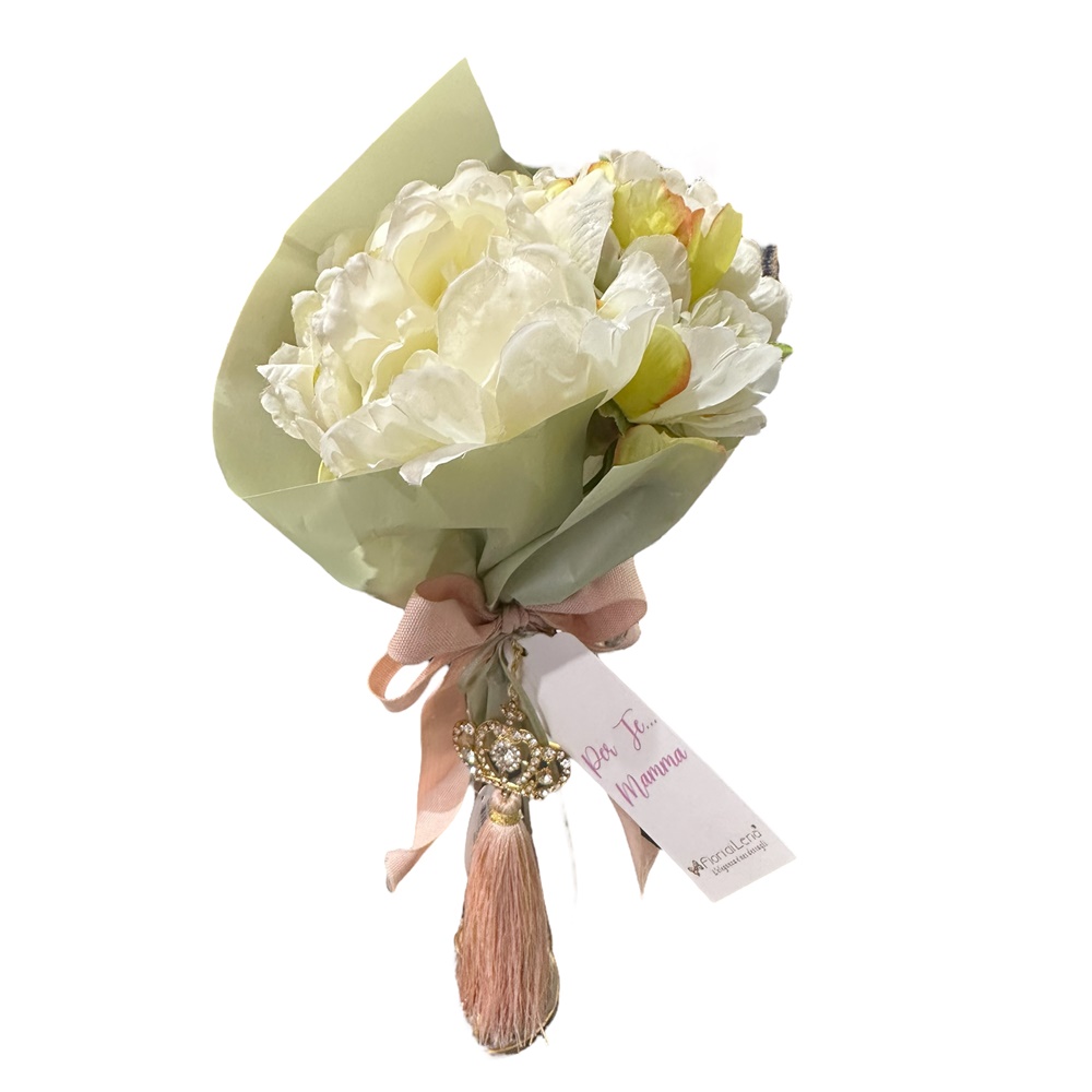 Fiori di Lena – Bush di fiori misti con tag Festa della Mamma e nappa corona