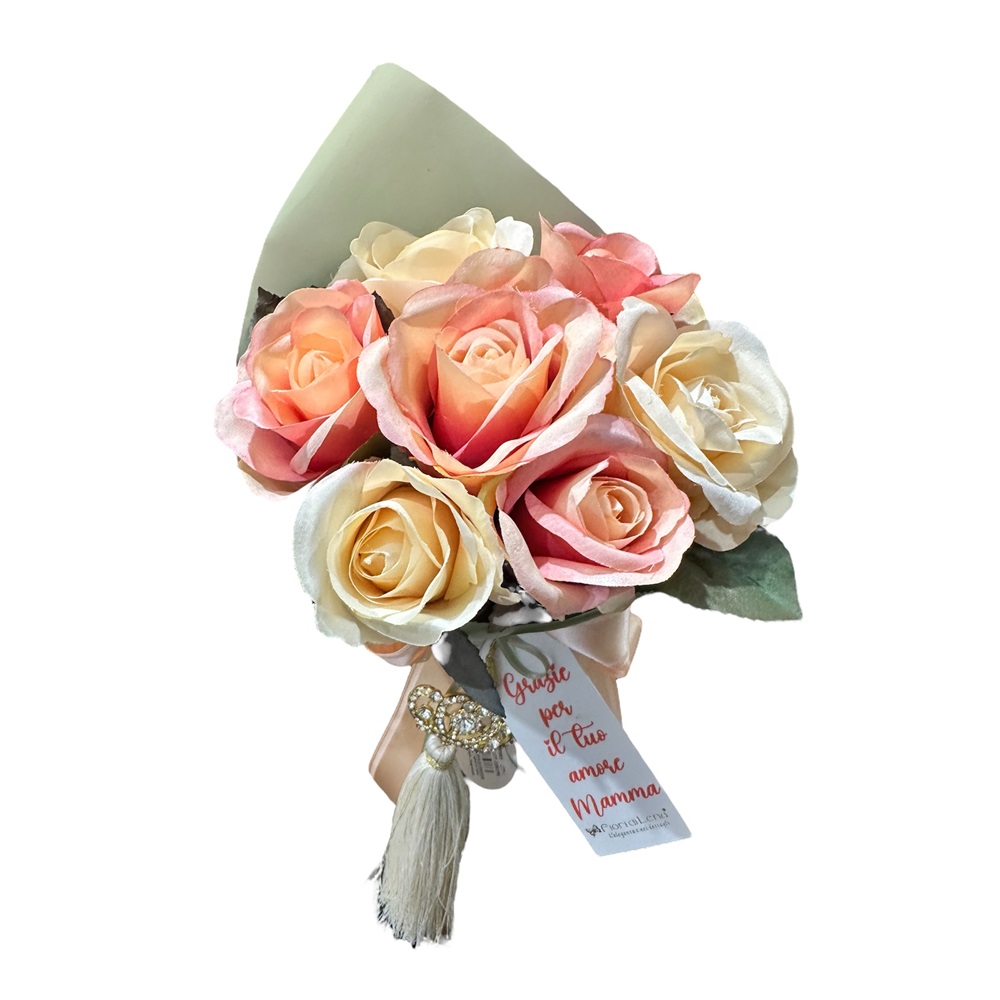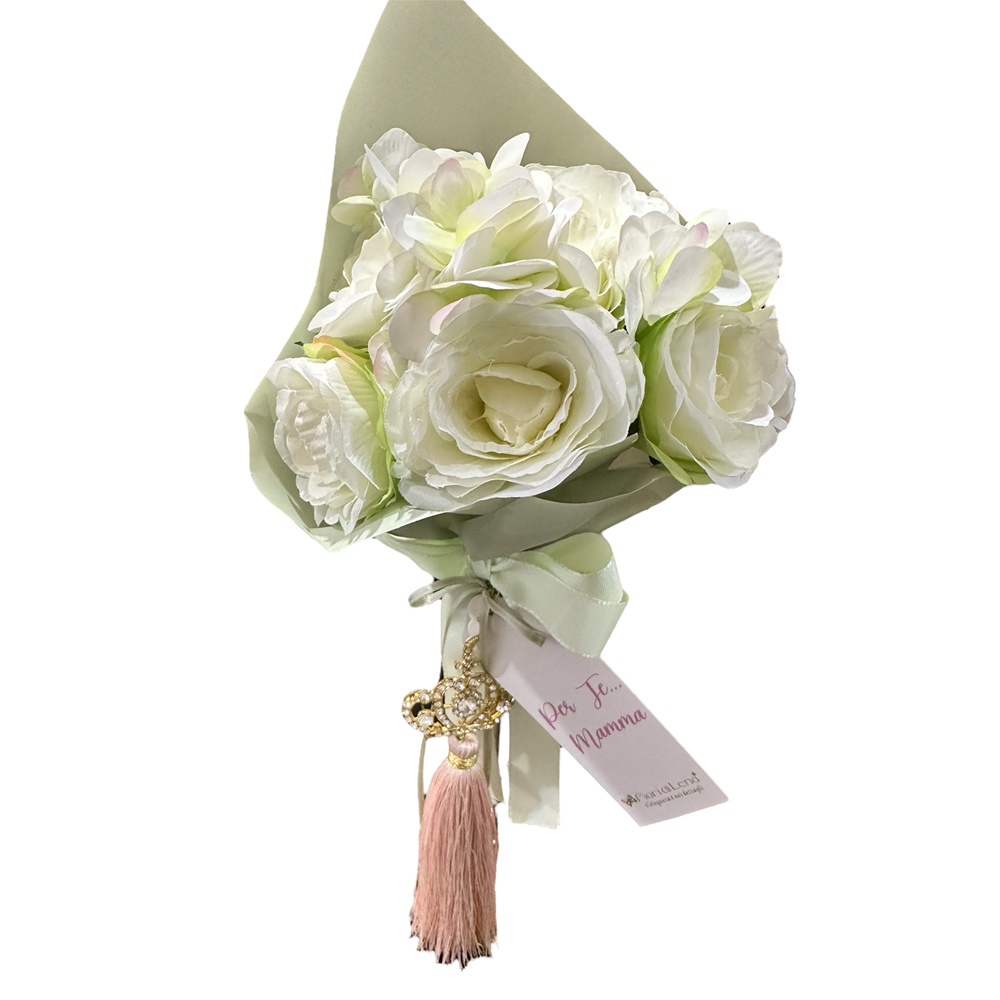 Fiori di Lena – Bush di fiori misti con tag Festa della Mamma e nappa corona – Una proposta unica e curata nei dettagli, pensata per sorprendere e valorizzare ogni occasione speciale con stile ed emozione.