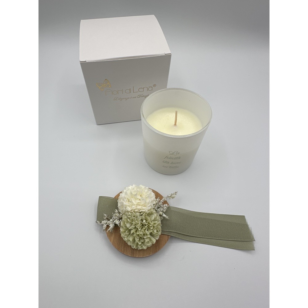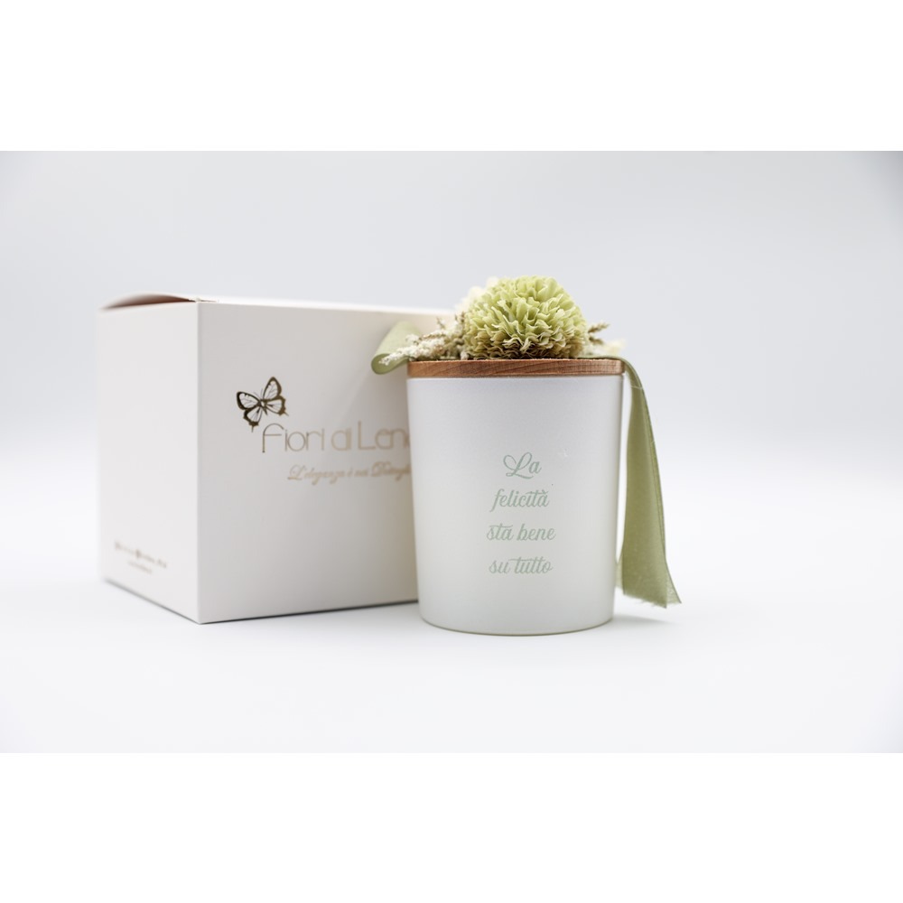 Fiori di Lena – Candela profumata 140 gr con coperchio dalie e contenitore con scritta, con scatola