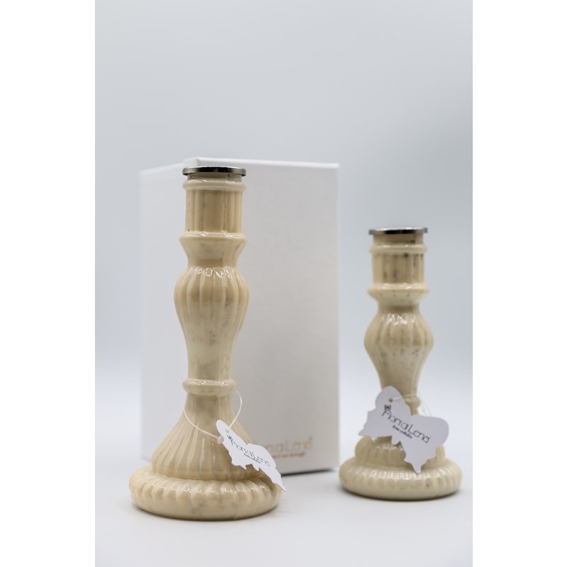 Fiori di Lena – Candeliere in vetro colore cream h 20 cm con scatola – Una proposta unica e curata nei dettagli, pensata per sorprendere e valorizzare ogni occasione speciale con stile ed emozione.