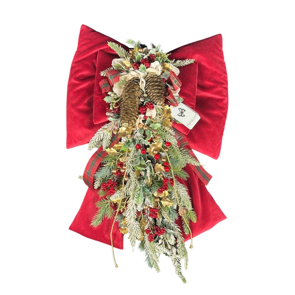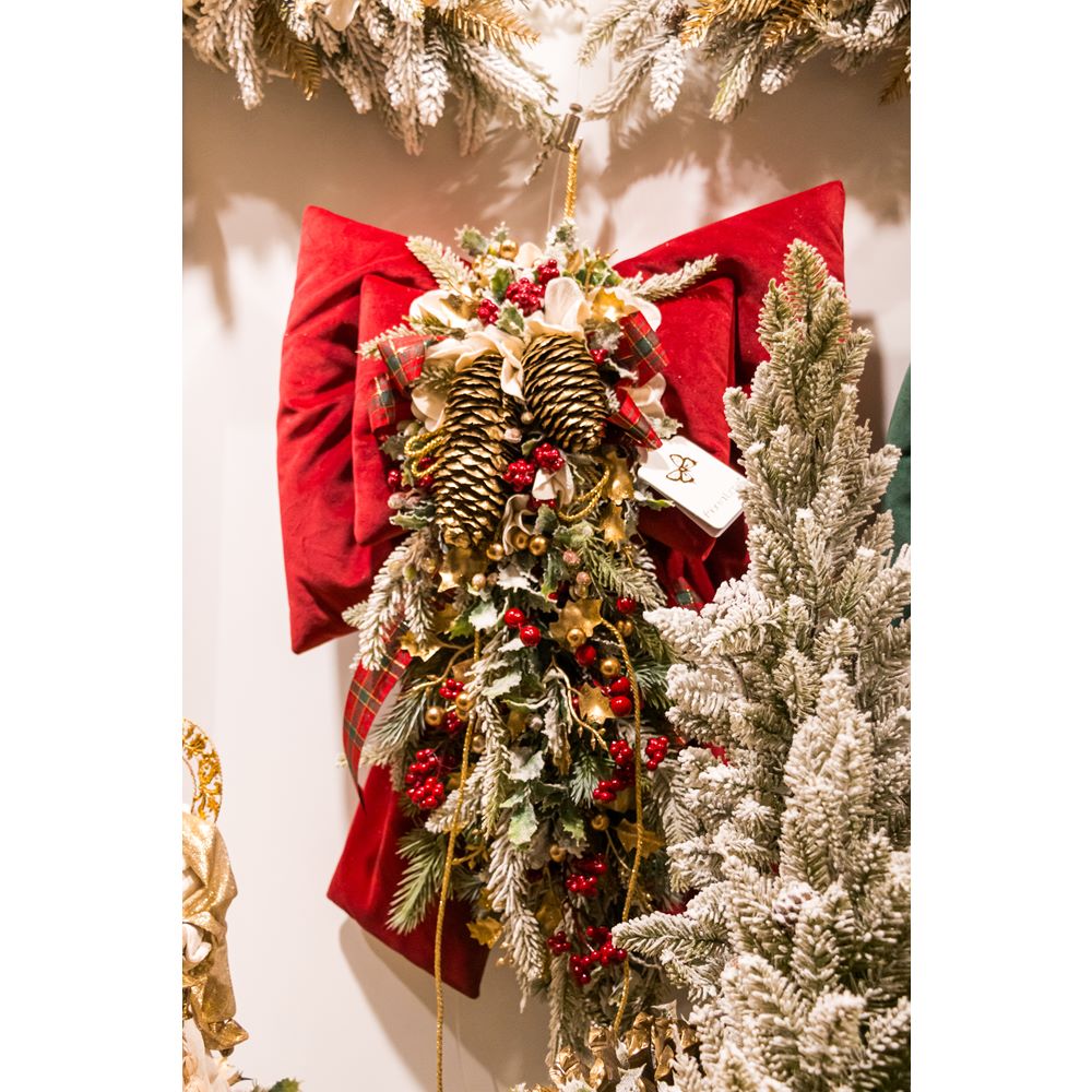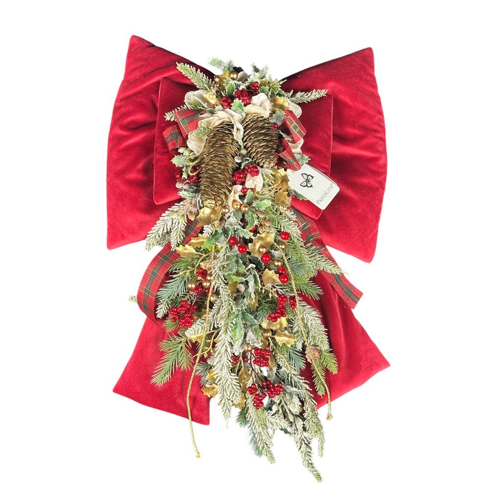 Fiori di Lena – FIOCCO GIGANTE C/DECORO,PINO,BACCHE ED ELEMENTI RUSTICI H:60 + SCATOLA