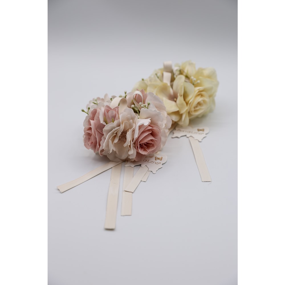 Fiori di Lena – Girocandela con 4 roselline, boccioli, ortensia e nebbiolina cm 10 x 6 h ( Ø interno 3 cm ) – Una proposta unica e curata nei dettagli, pensata per sorprendere e valorizzare ogni occasione speciale con stile ed emozione.