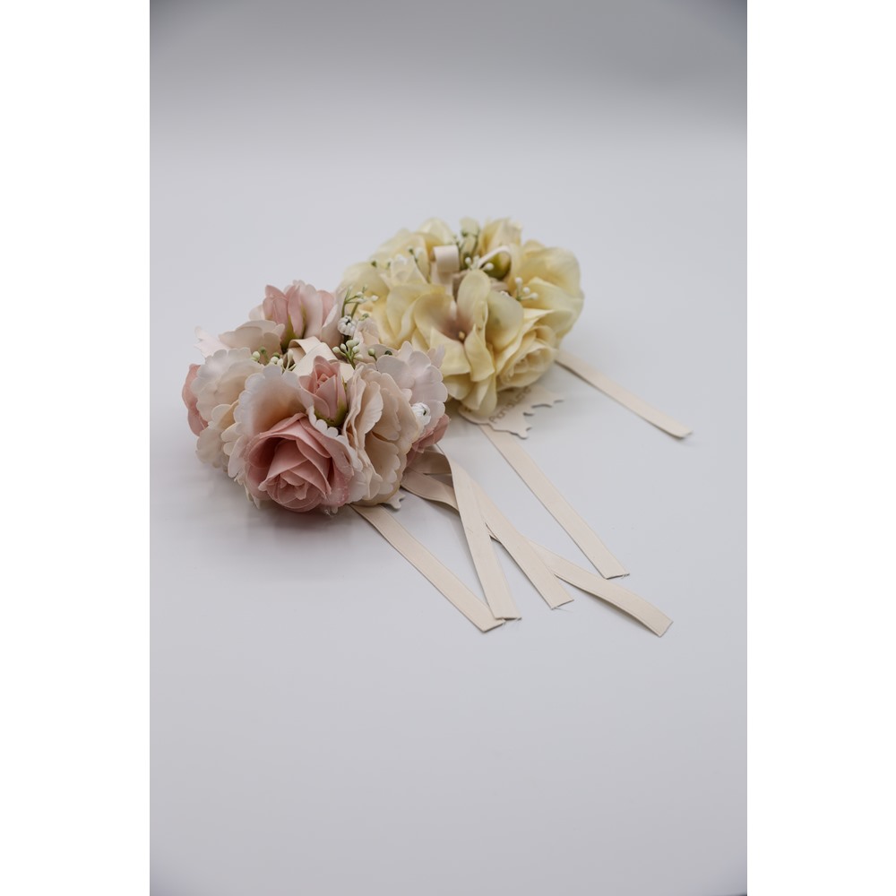 Fiori di Lena – Girocandela con 4 roselline, boccioli, ortensia e nebbiolina cm 10 x 6 h ( Ø interno 3 cm )