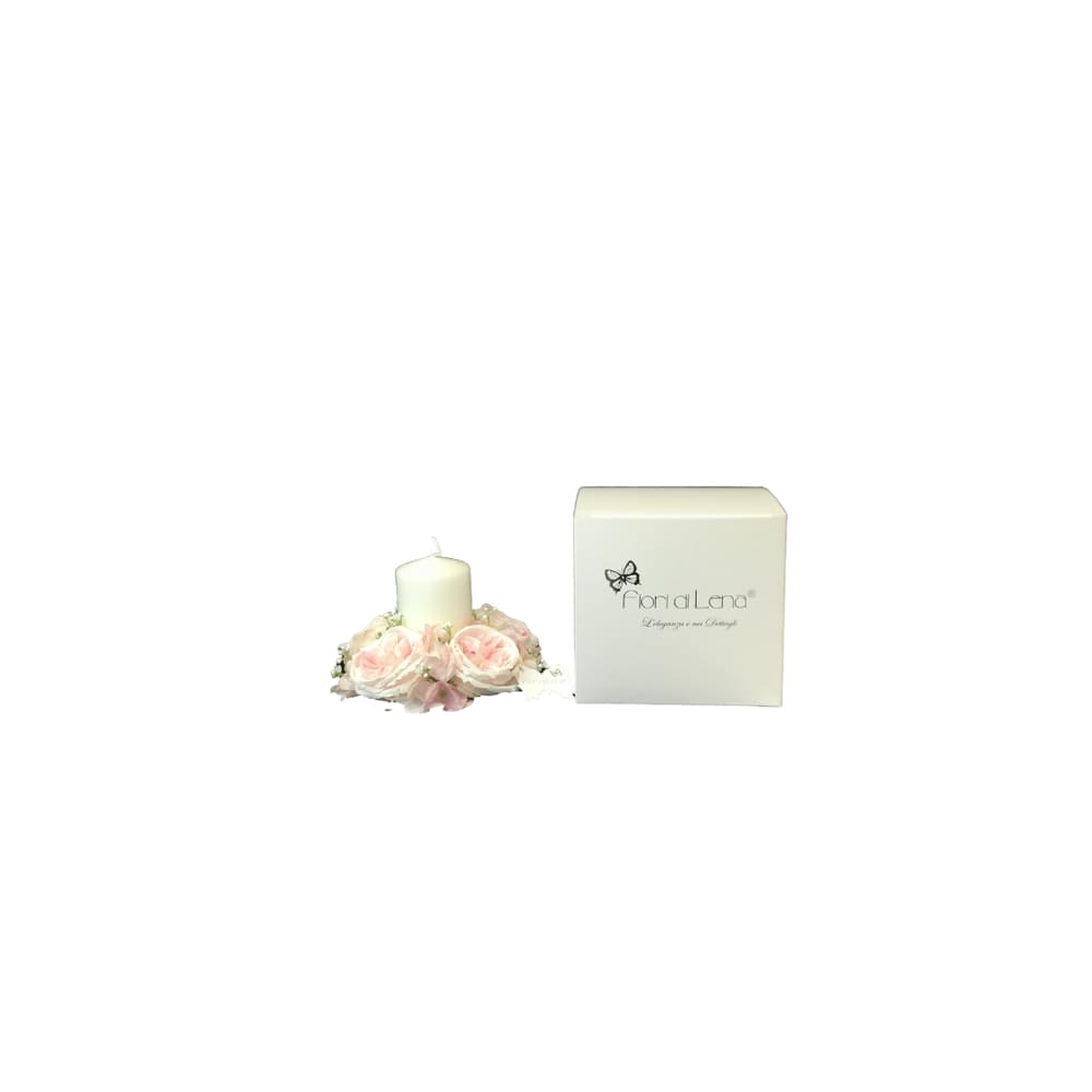 Fiori di Lena – Portacandele con 5 rose Austin, ortensie e nebbiolina Ø 16 cm + scatola
