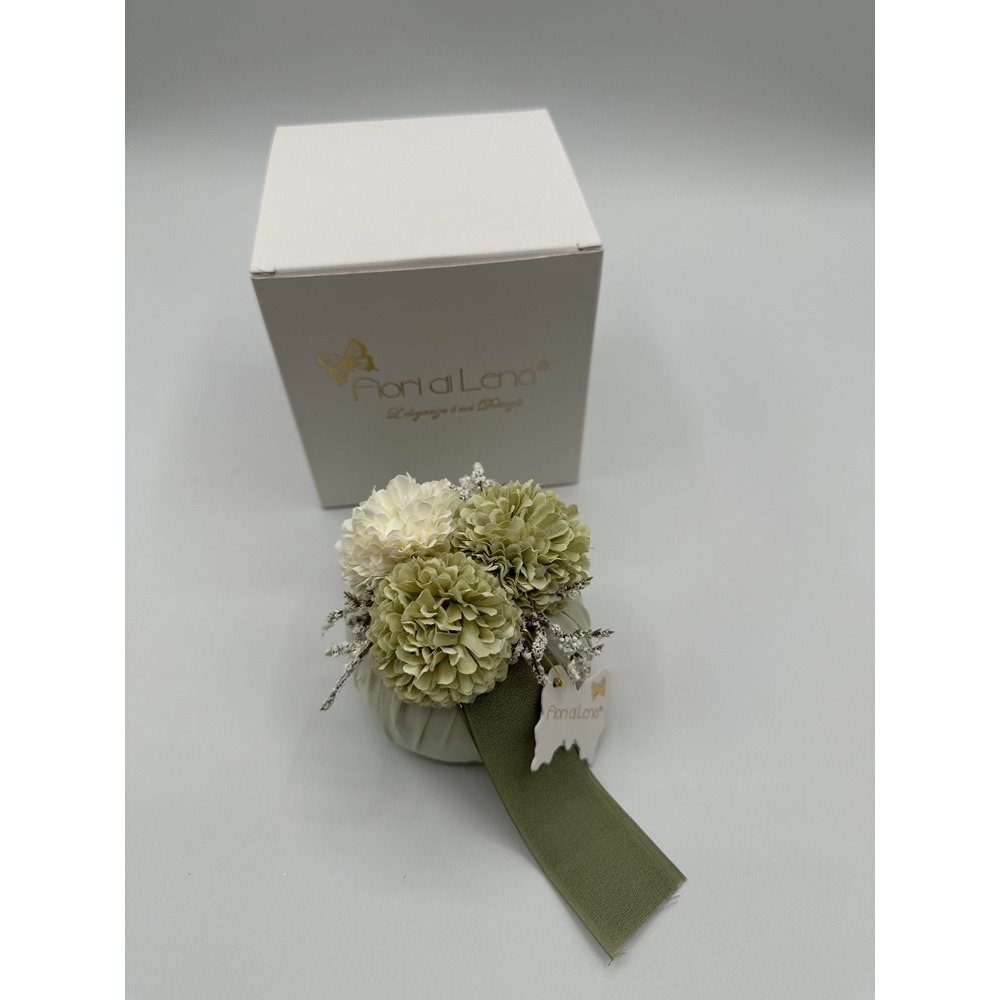 Fiori di Lena – Puffo mini verde, con dalie e nebbiolina, con scatola