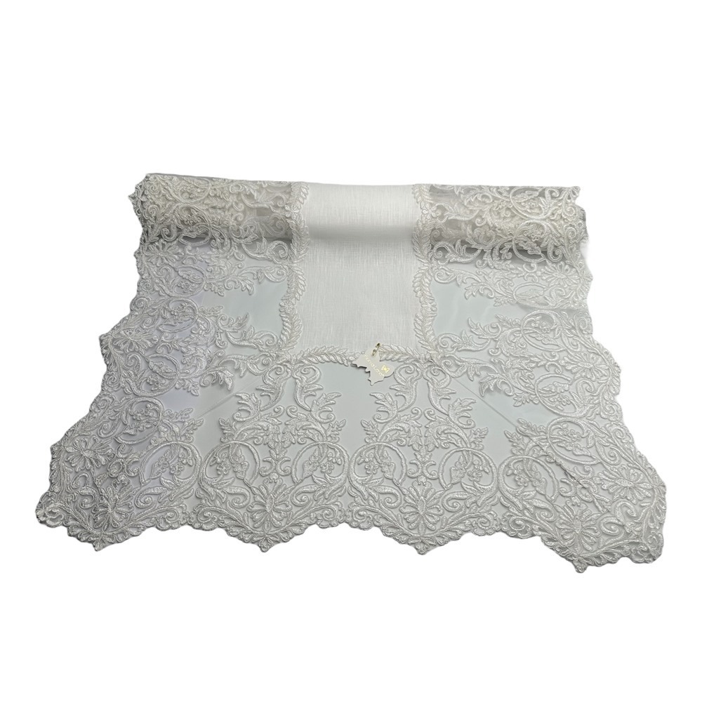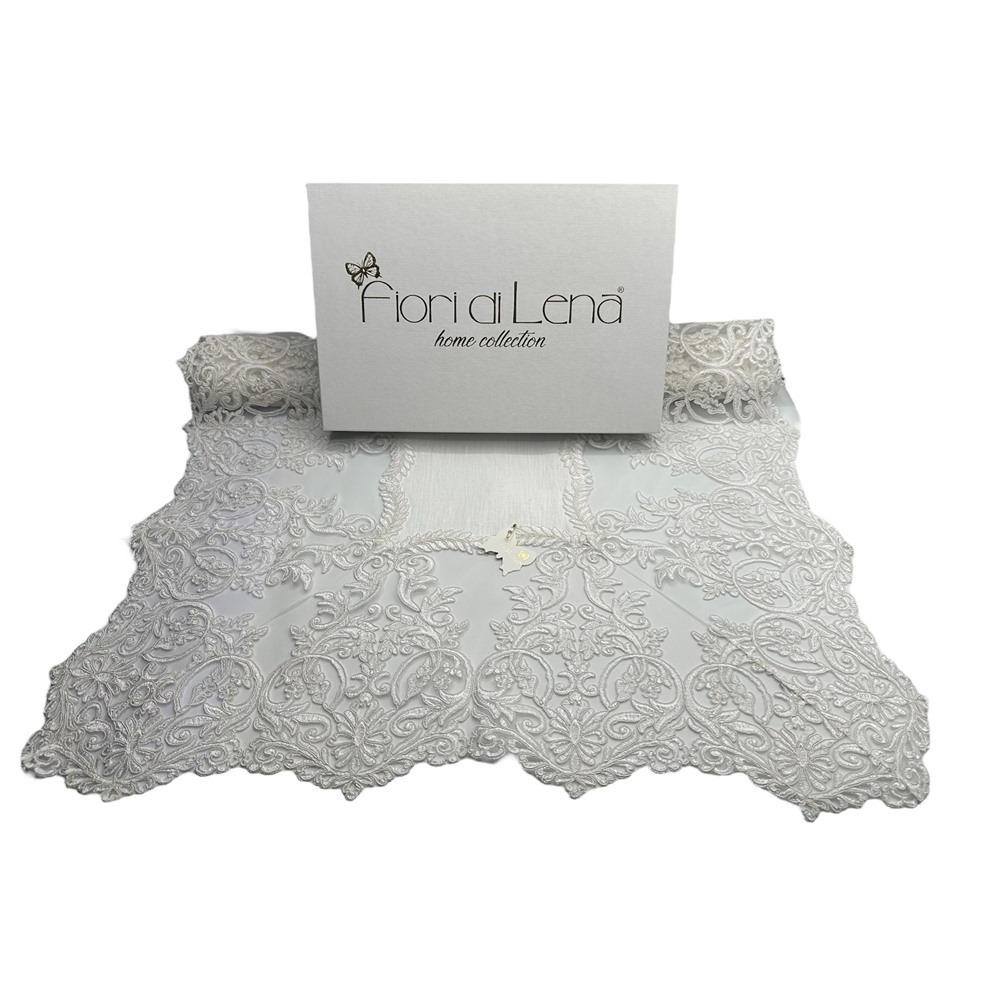 Fiori di Lena – Runner in lino avorio con pizzo Impero avorio cm 170X65