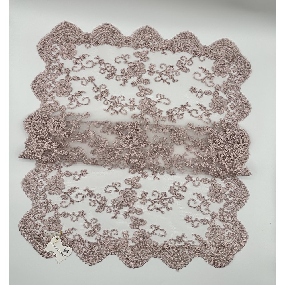 Fiori di Lena – Runner in pizzo rosa, cm 45 x x 65 con scatola