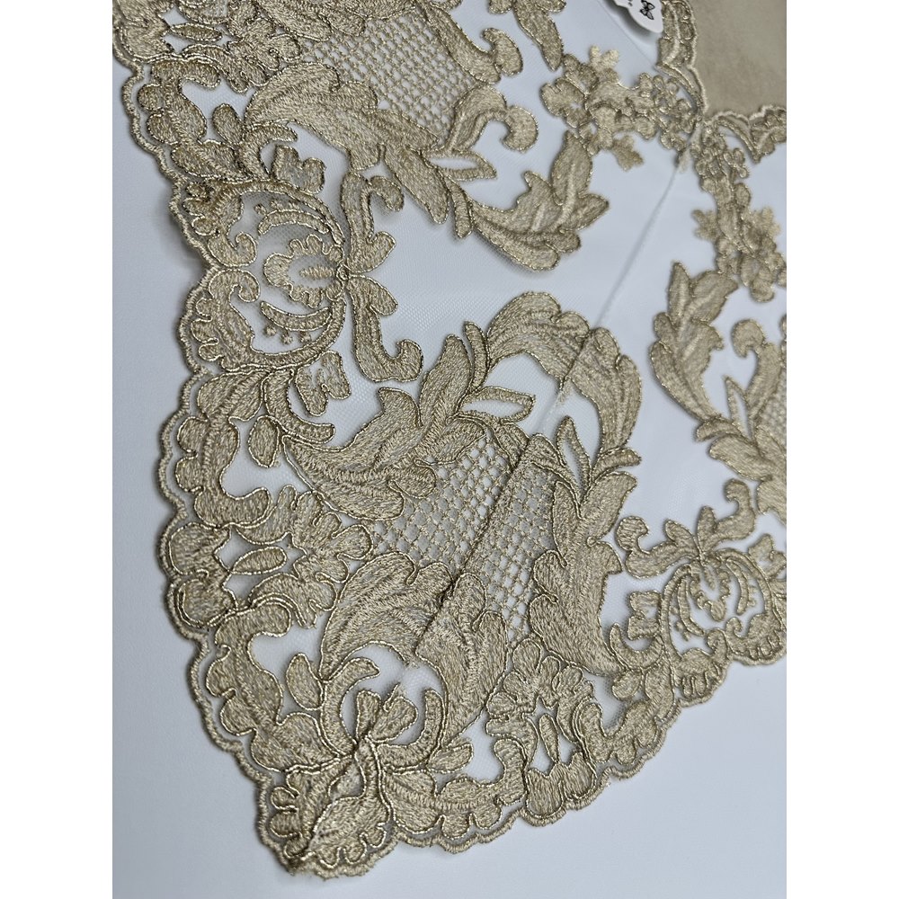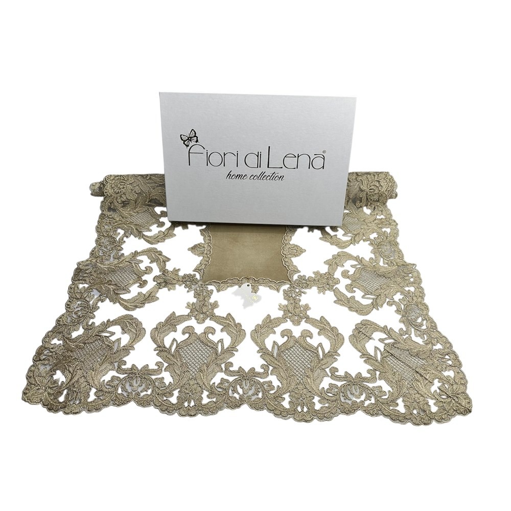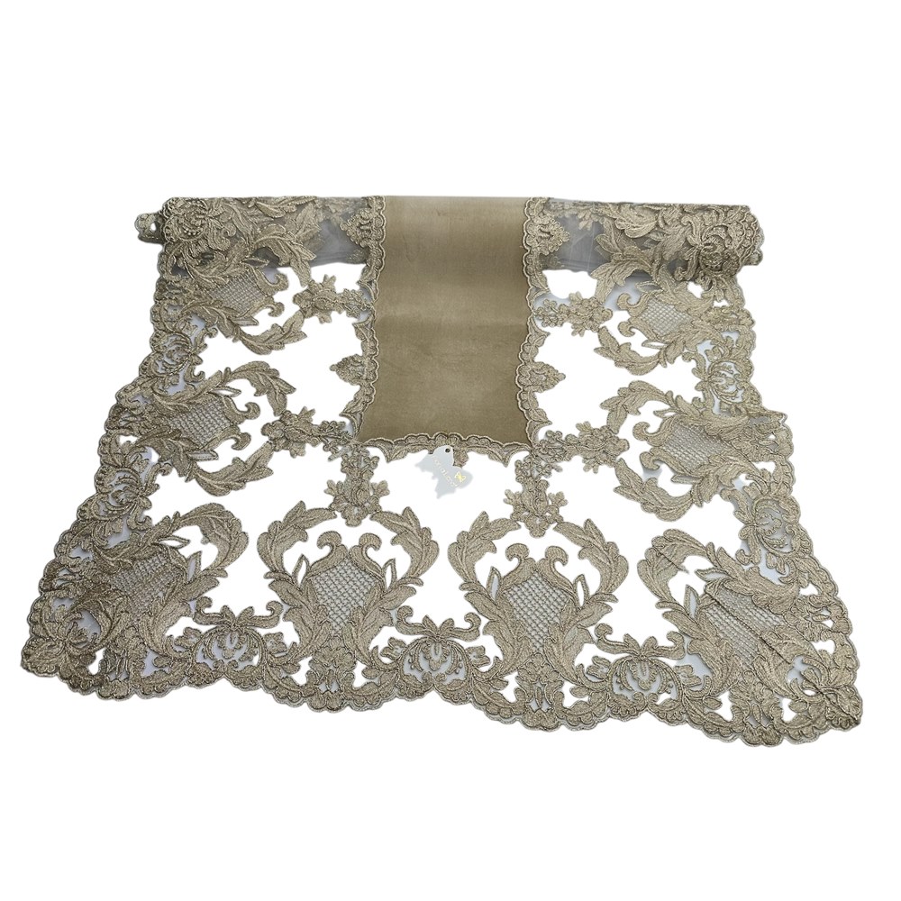 Fiori di Lena – Runner in velluto nocciola con pizzo fregio alto gold cm 140X60