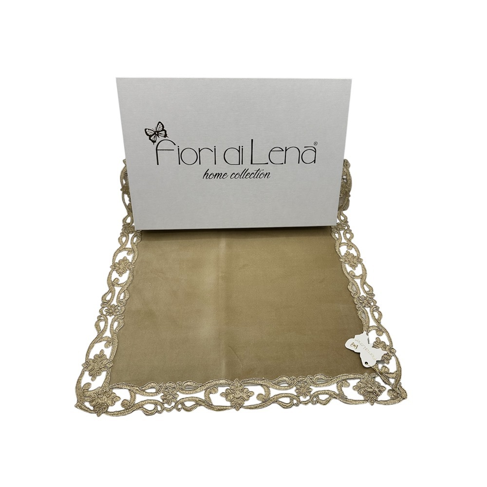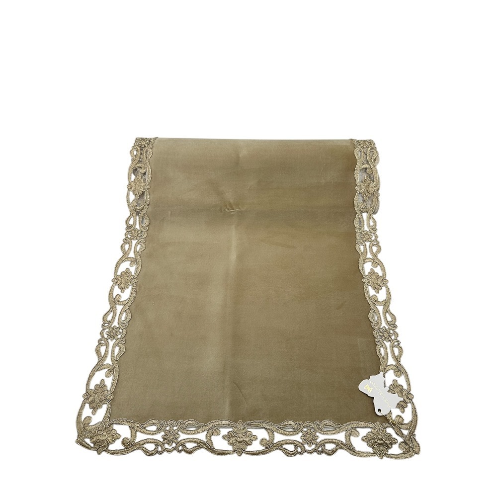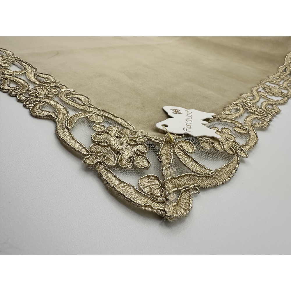 Fiori di Lena – Runner in velluto oro con pizzo cm 140X40