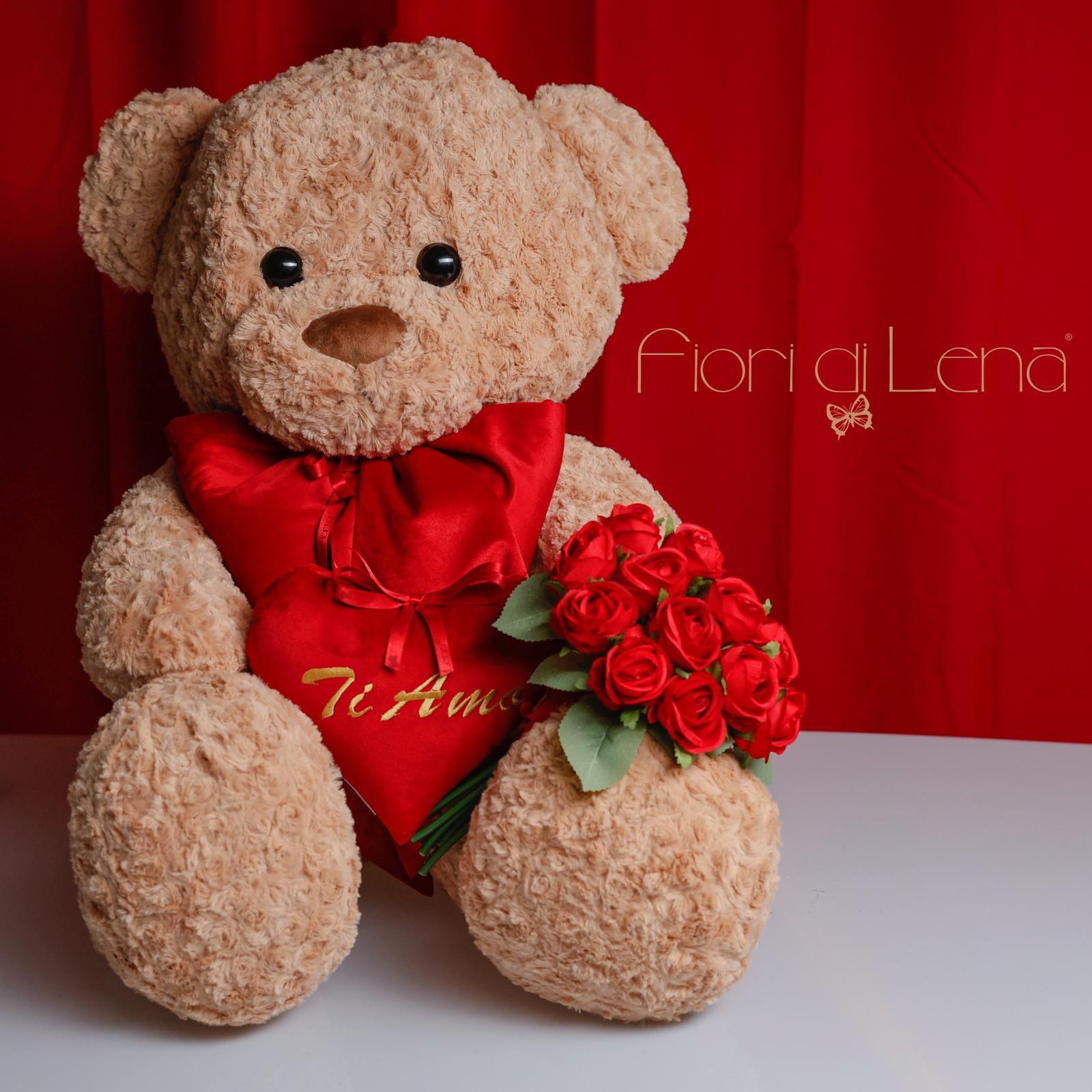 Per San Valentino 2026 il nostro iconico orsetto si veste di rosso, tra un bouquet di rose rosse e un morbido cuore ricamato.