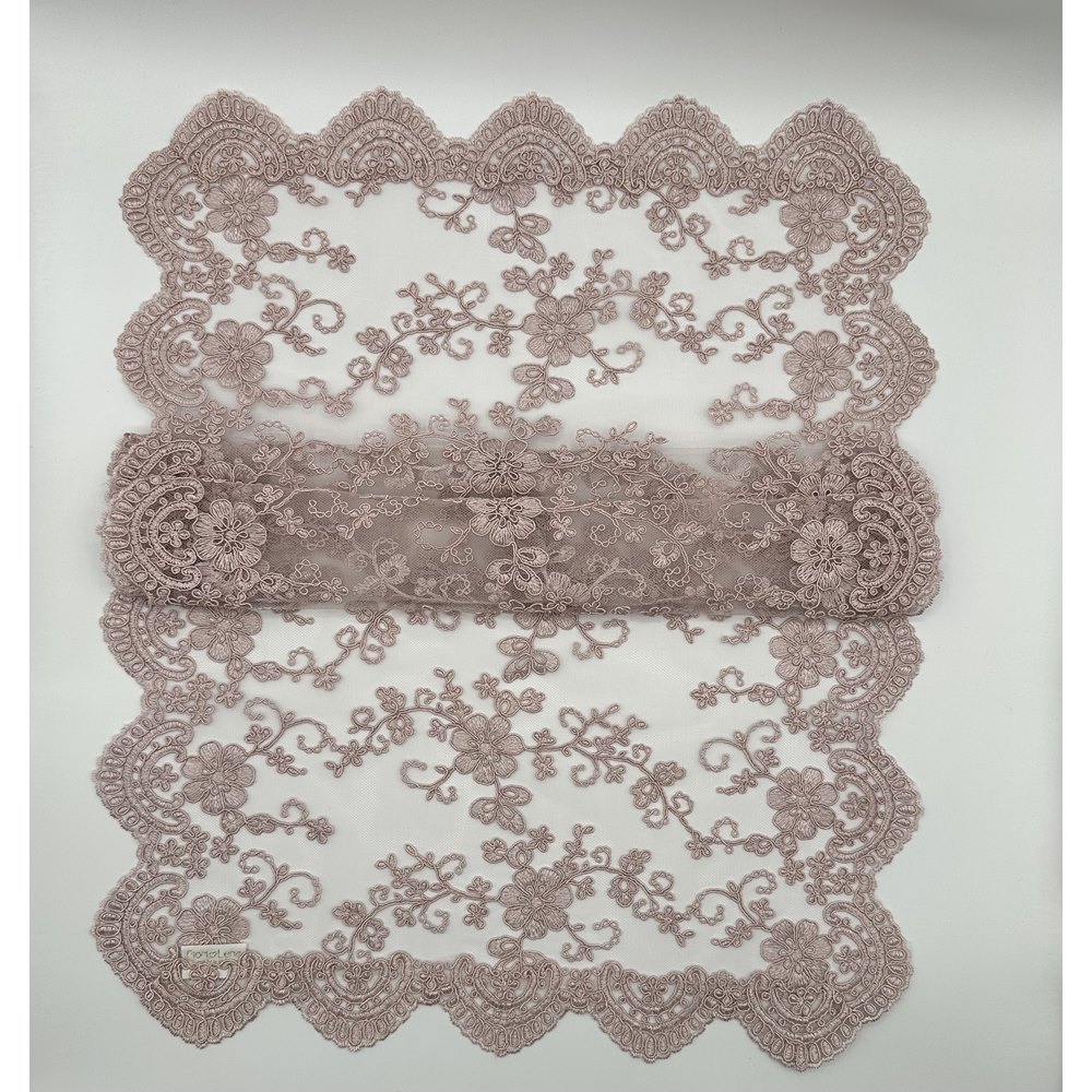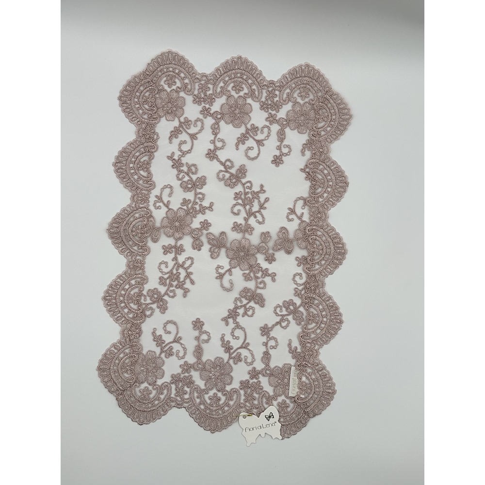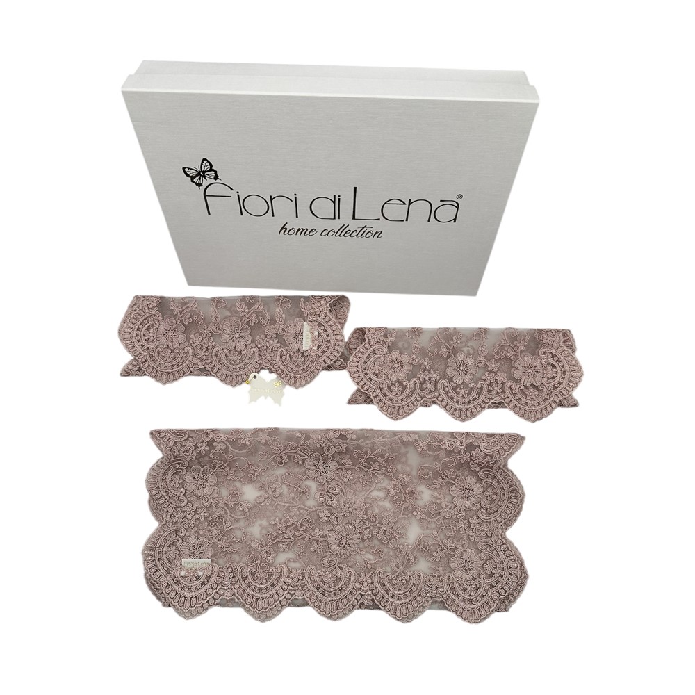 Fiori di Lena – Tris runner + 2 centri in pizzo rosa con scatola regalo
