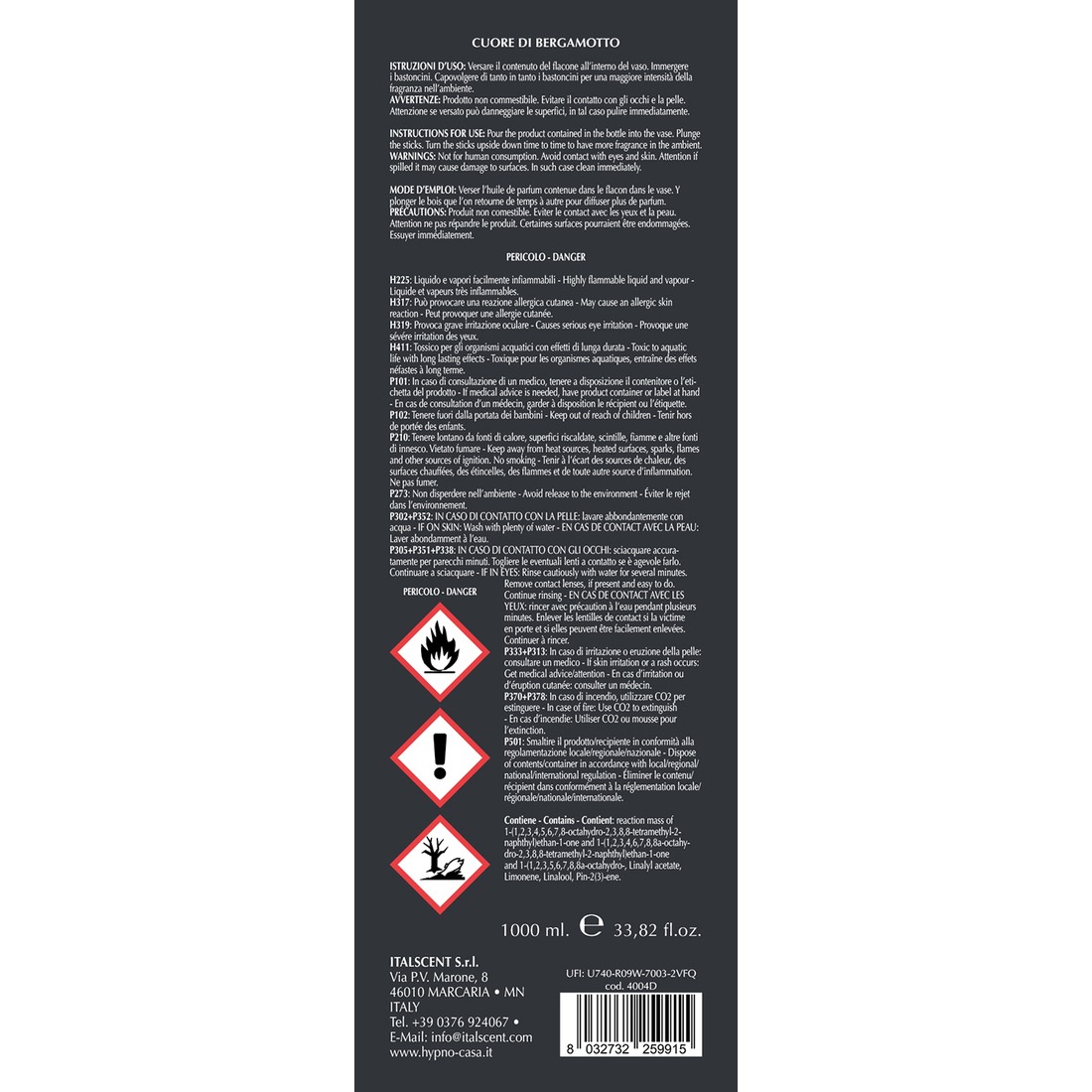 HYPNO – Ricarica per Diffusore a Bastoncino 1000 ml Cuore di Bergamotto