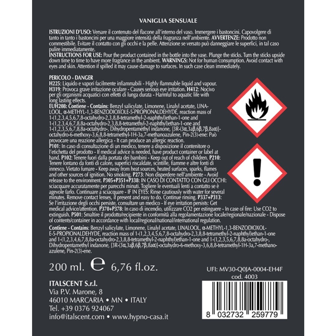 HYPNO – Ricarica per Diffusore a Bastoncino 200 ml Vaniglia Sensuale